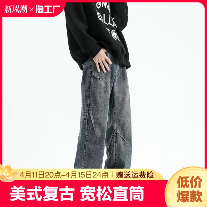 Ретро синие джинсы, штаны, в американском стиле, свободный прямой крой, 2023 года, осенние