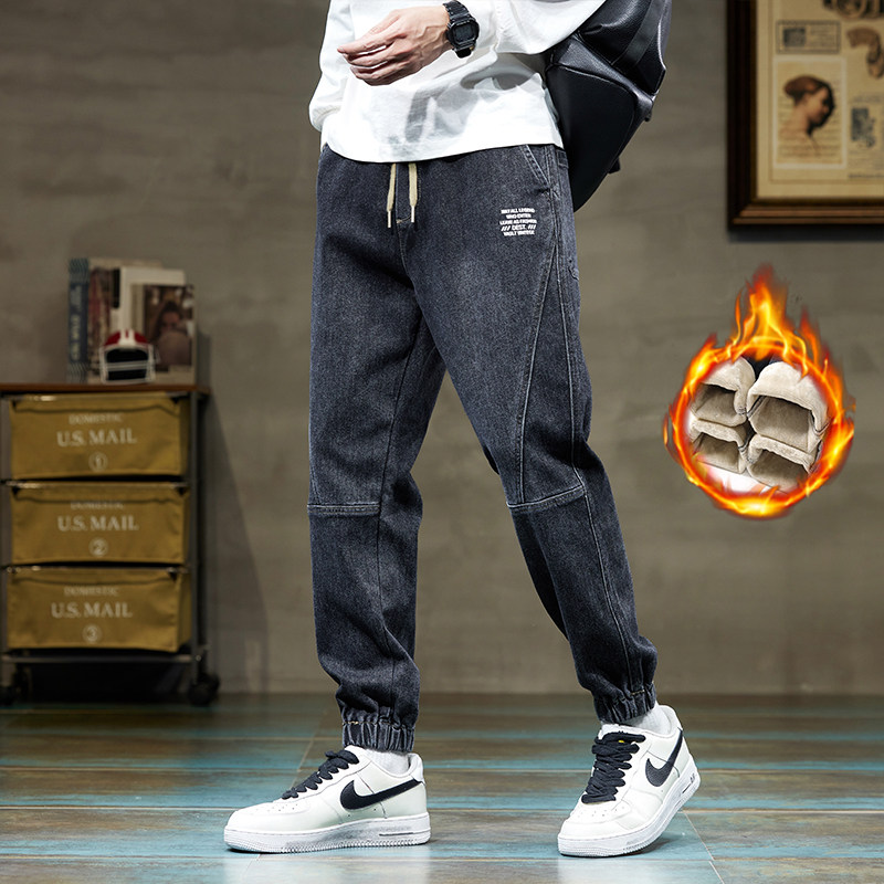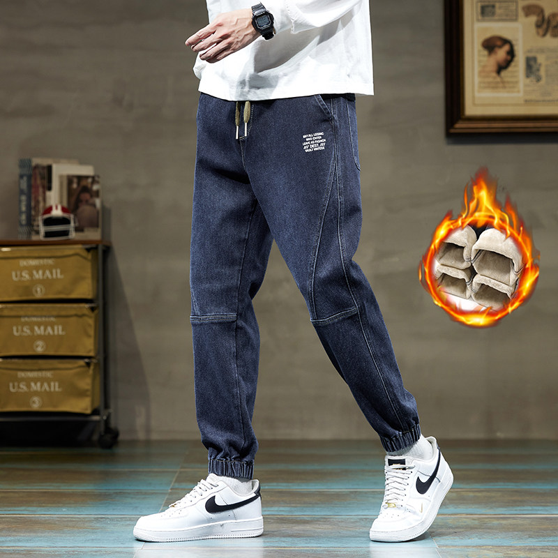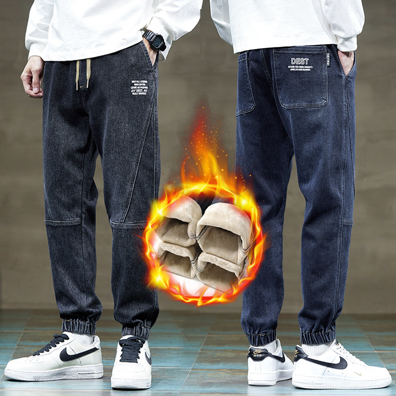 Флисовые демисезонные джинсы с начесом, удерживающие тепло повседневные брюки для отдыха, увеличенная толщина, эластичная талия