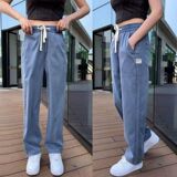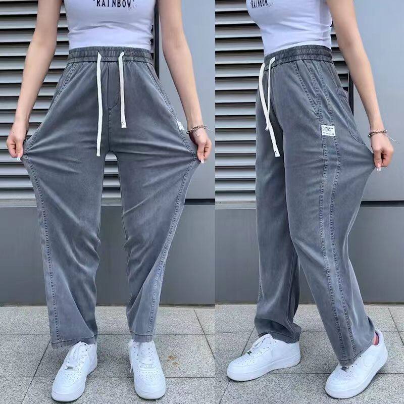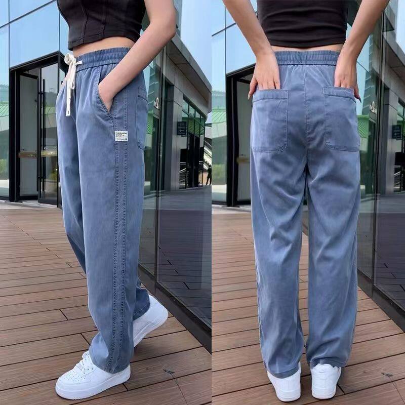 Летние джинсы, ультратонкие тонкие шелковые штаны для отдыха, свободный прямой крой