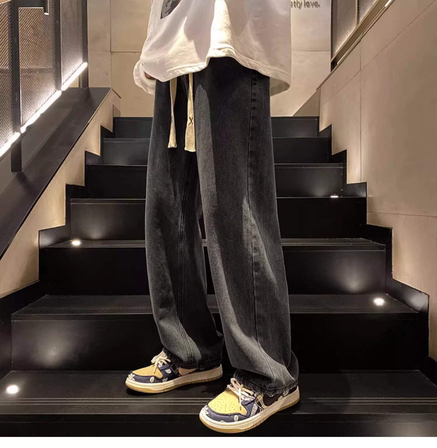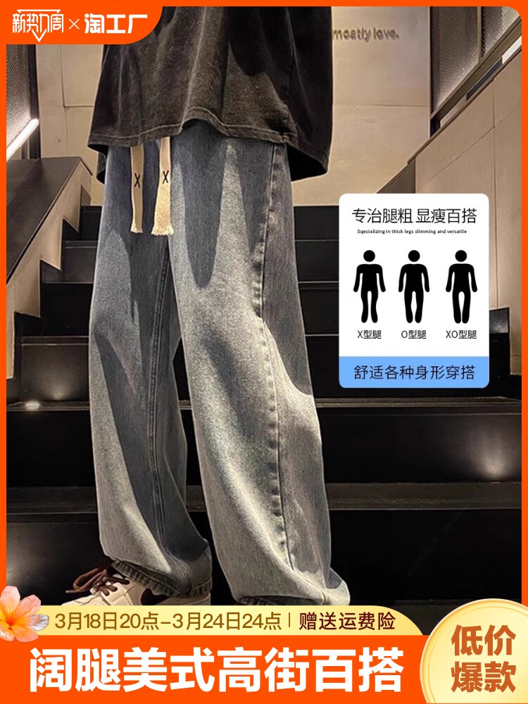 Летние джинсы, повседневные брюки, свободный прямой крой, оверсайз, в американском стиле
