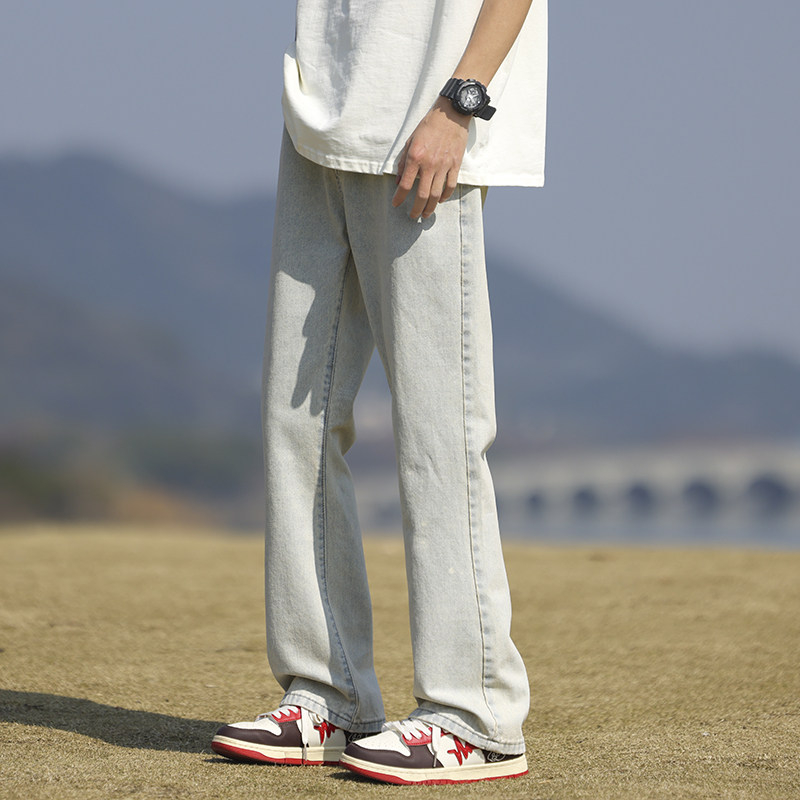 Летние тонкие джинсы, мужские ретро штаны, эластичная талия, в американском стиле, оверсайз