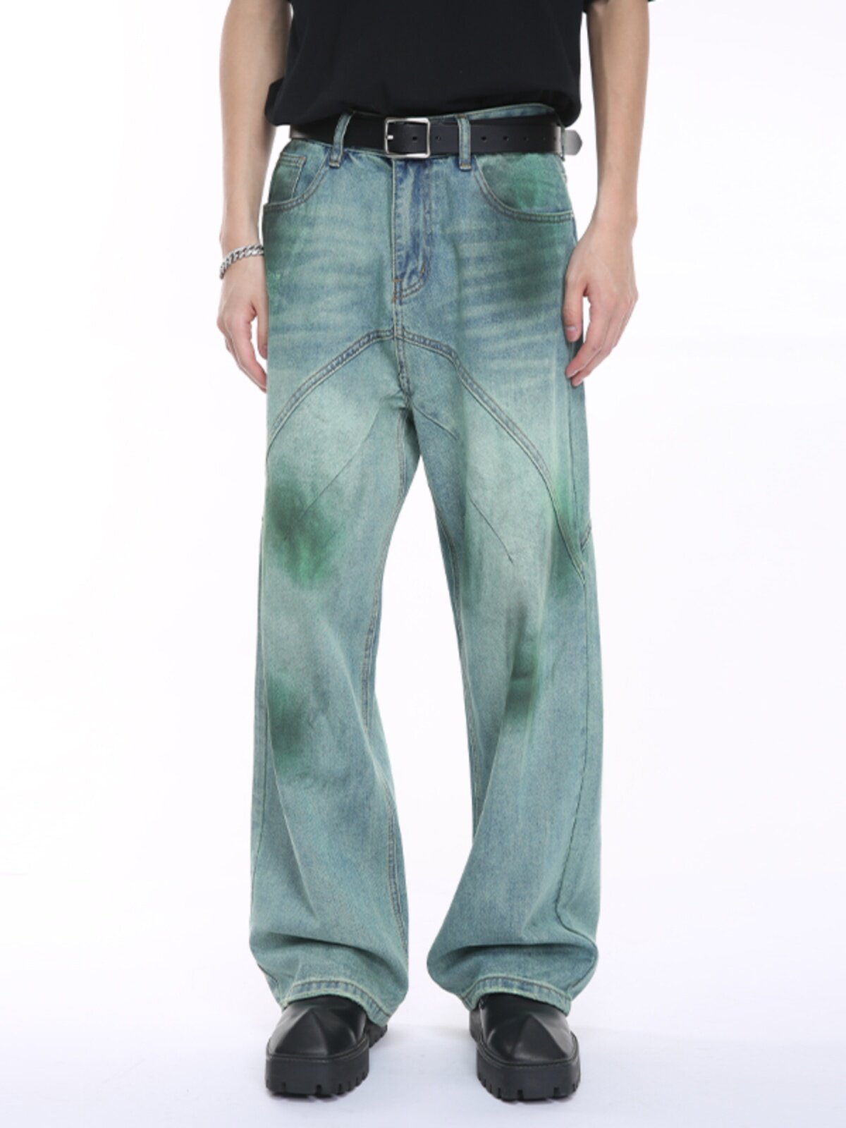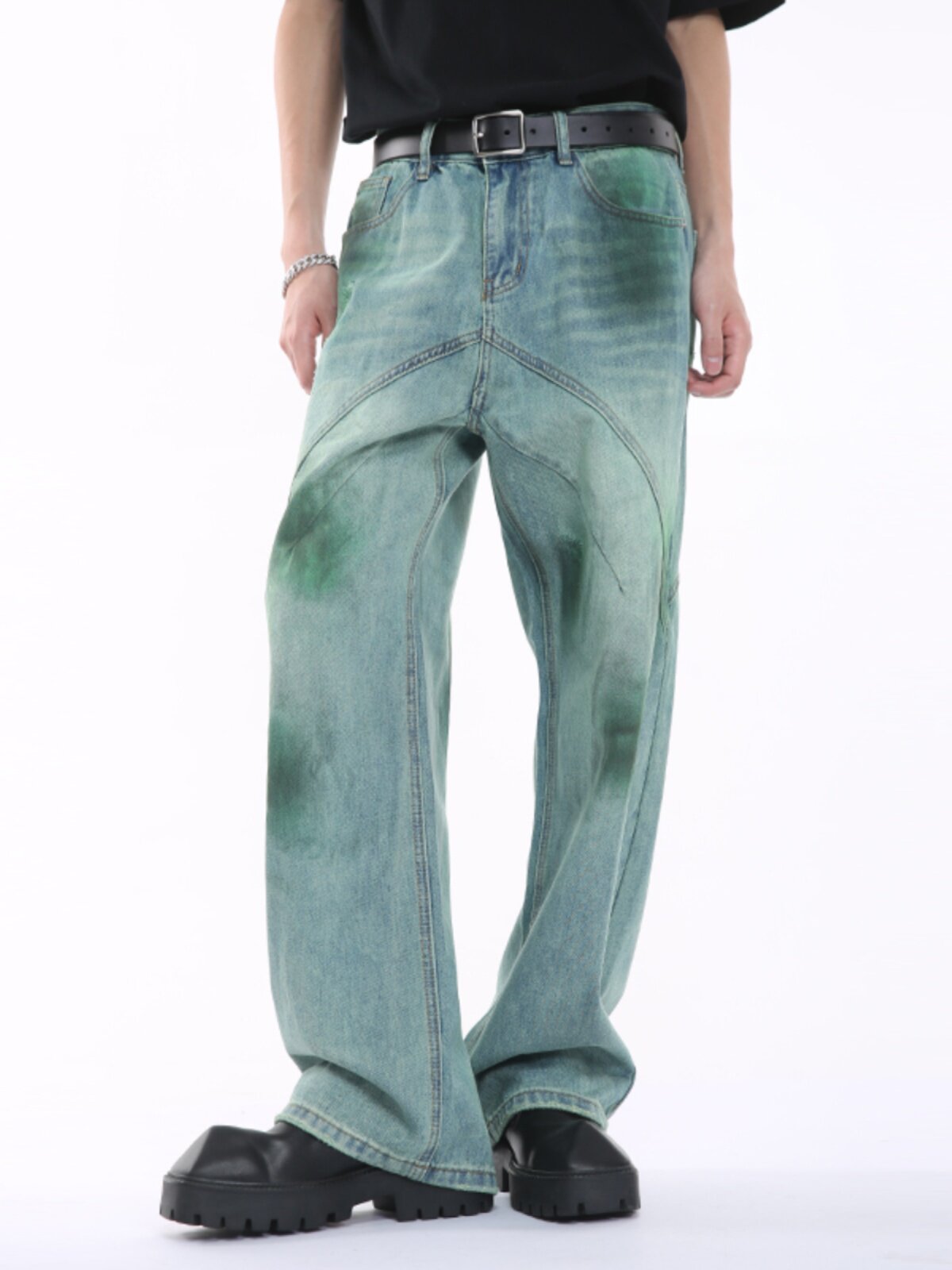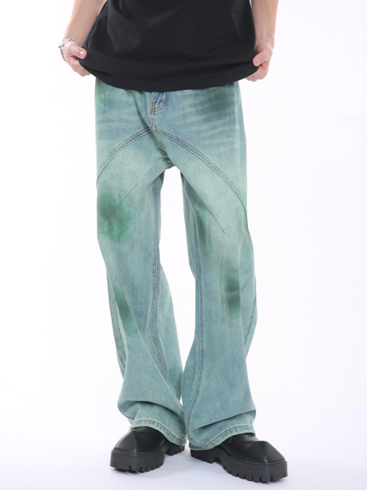 Voguo Relay Оригинальные небольшие дизайнерские зеленые джинсы, штаны подходит для мужчин и женщин