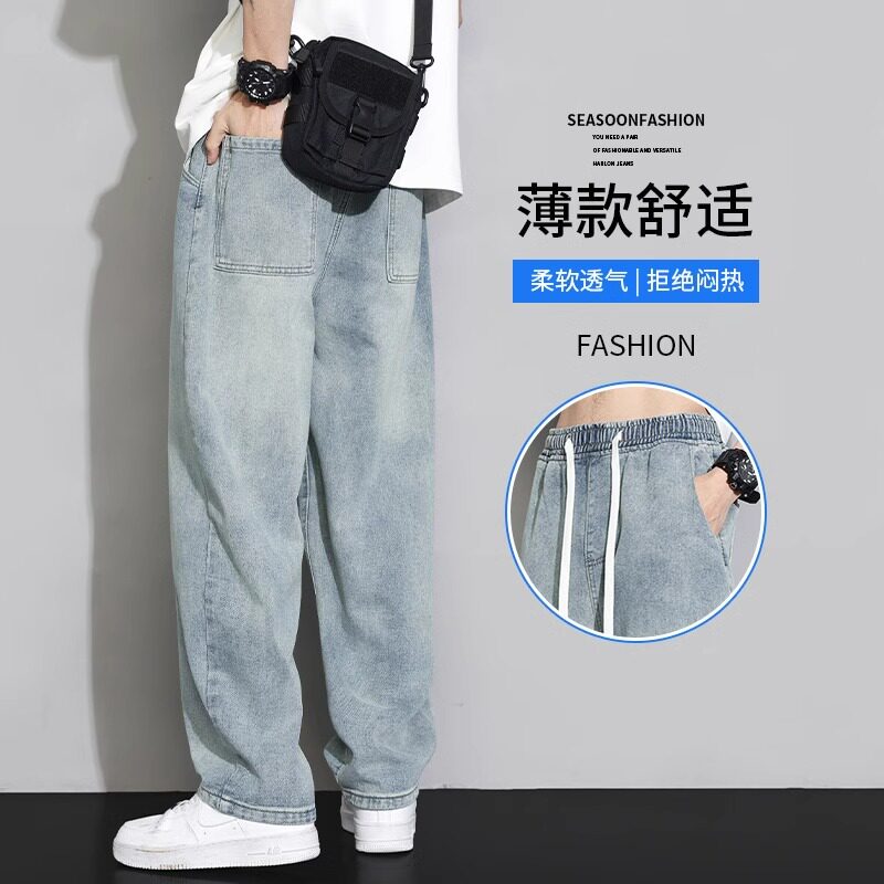 Летние тонкие джинсы, повседневные брюки, свободный прямой крой, в американском стиле