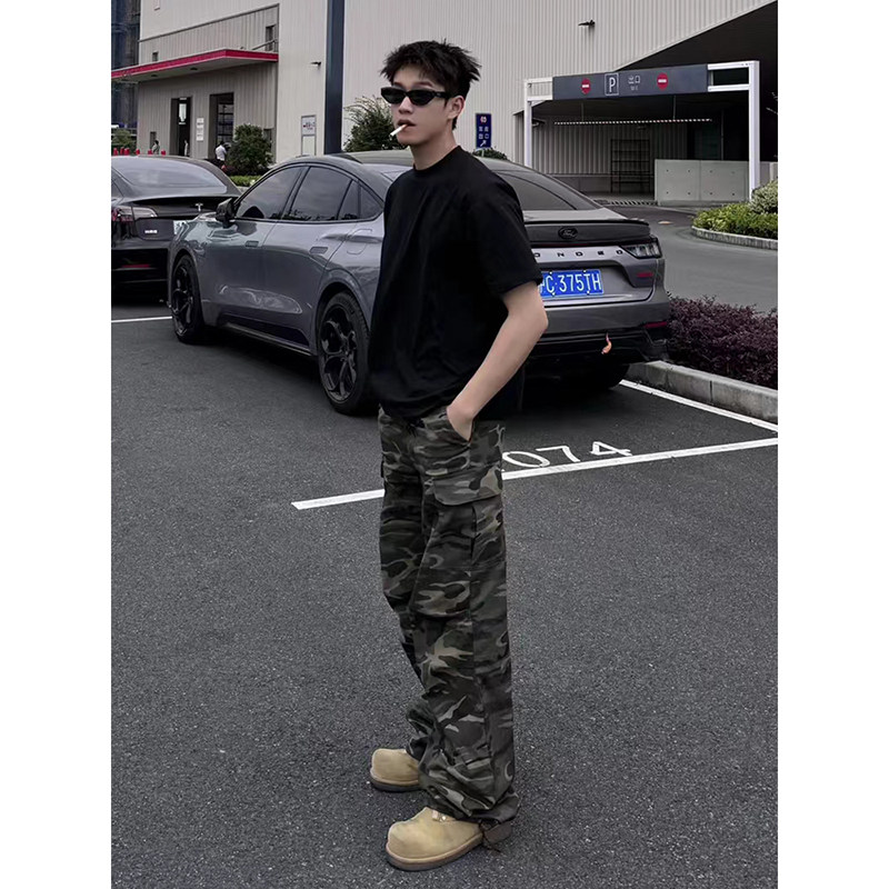 Камуфляжные летние тонкие штаны, джинсы для отдыха, в американском стиле, свободный крой