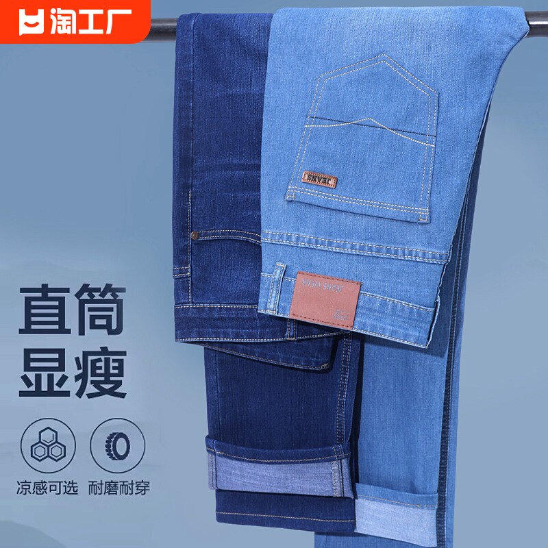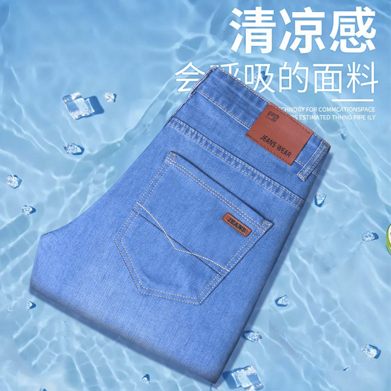 Джинсы, эластичные легкие и тонкие дышащие штаны, свободный прямой крой, высокая талия