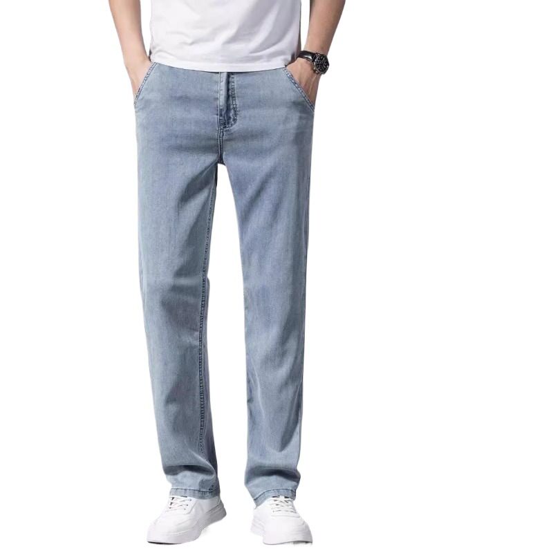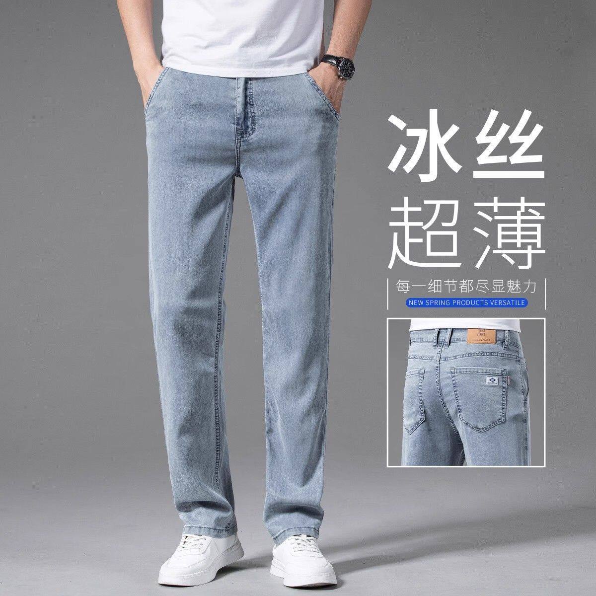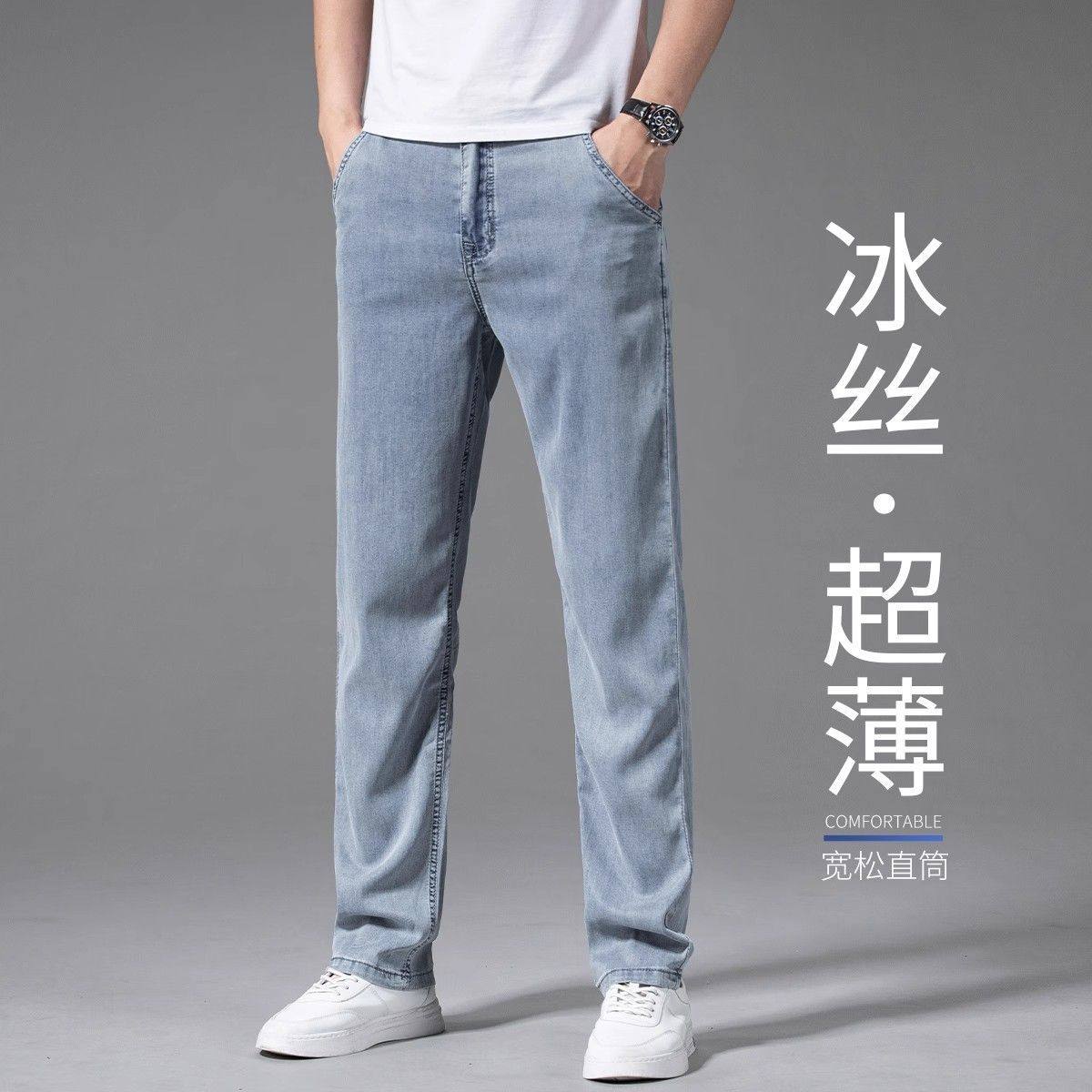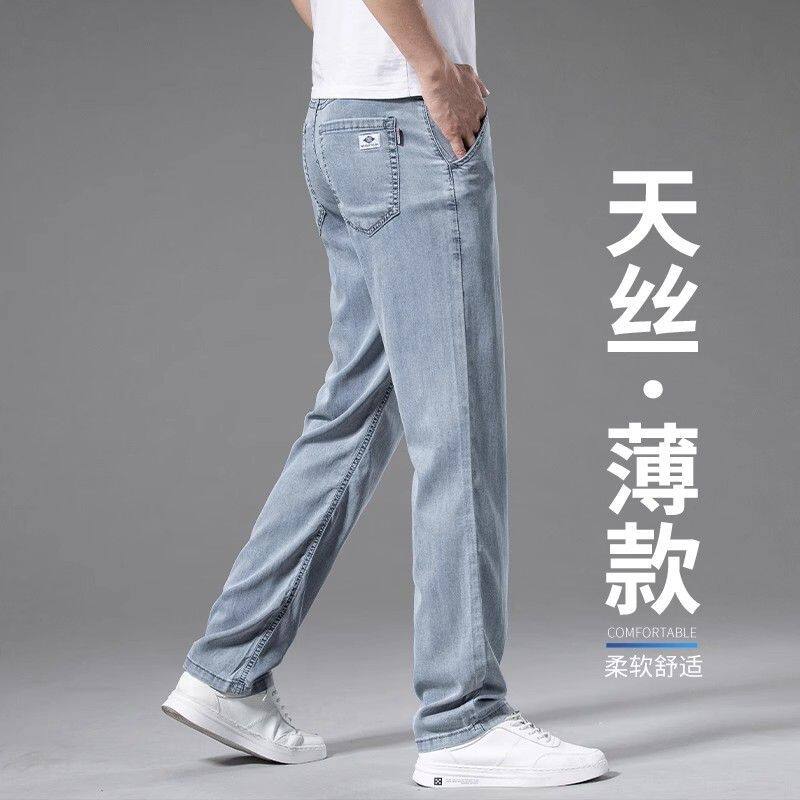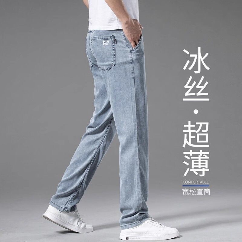 Летние шелковые прямые свободные джинсы, элитные тонкие ультратонкие штаны для отдыха