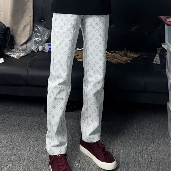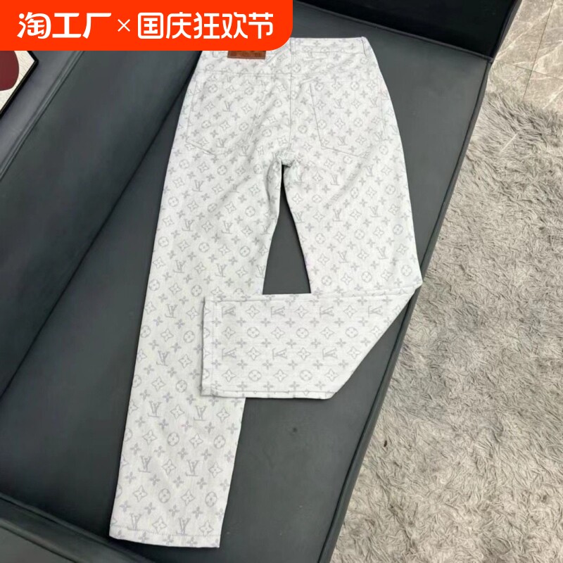 Джинсы подходит для мужчин и женщин для отдыха, демисезонные штаны, свободный прямой крой, с вышивкой, облегающий крой, популярно в интернете