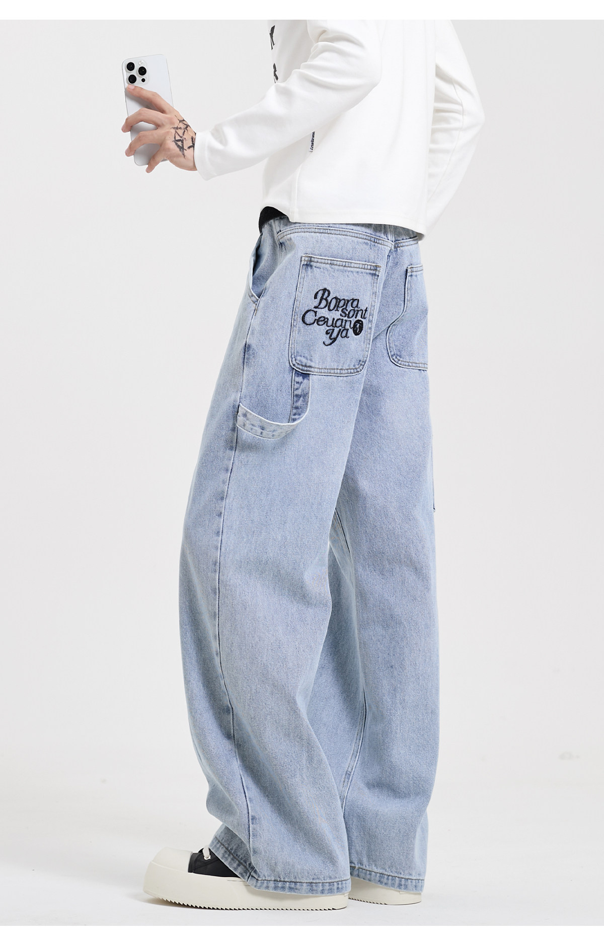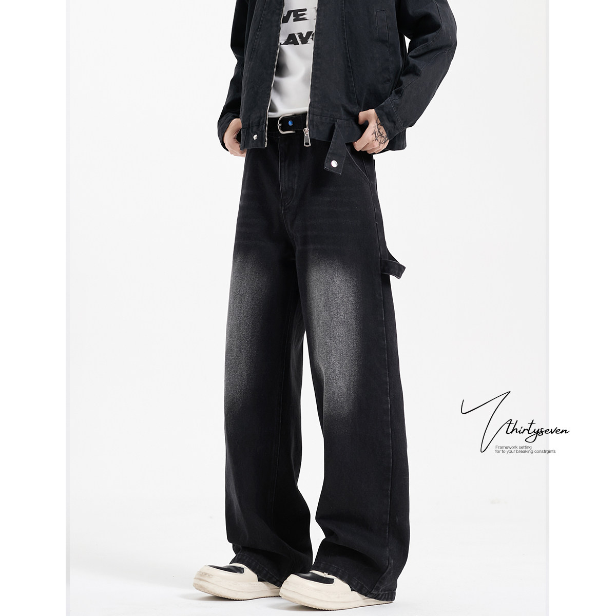 V37 Мужские летние штаны, универсальные джинсы, в американском стиле, с вышивкой, свободный прямой крой