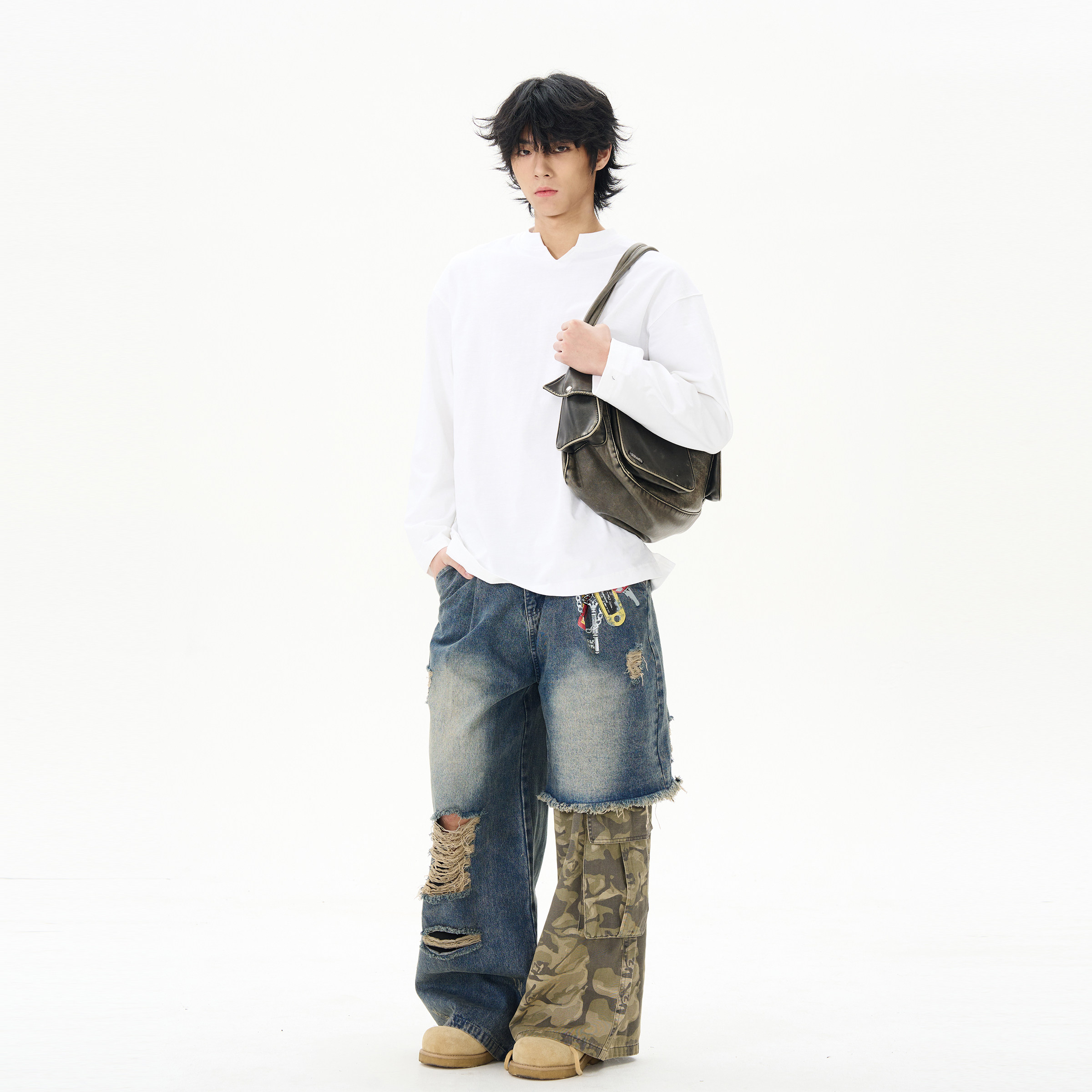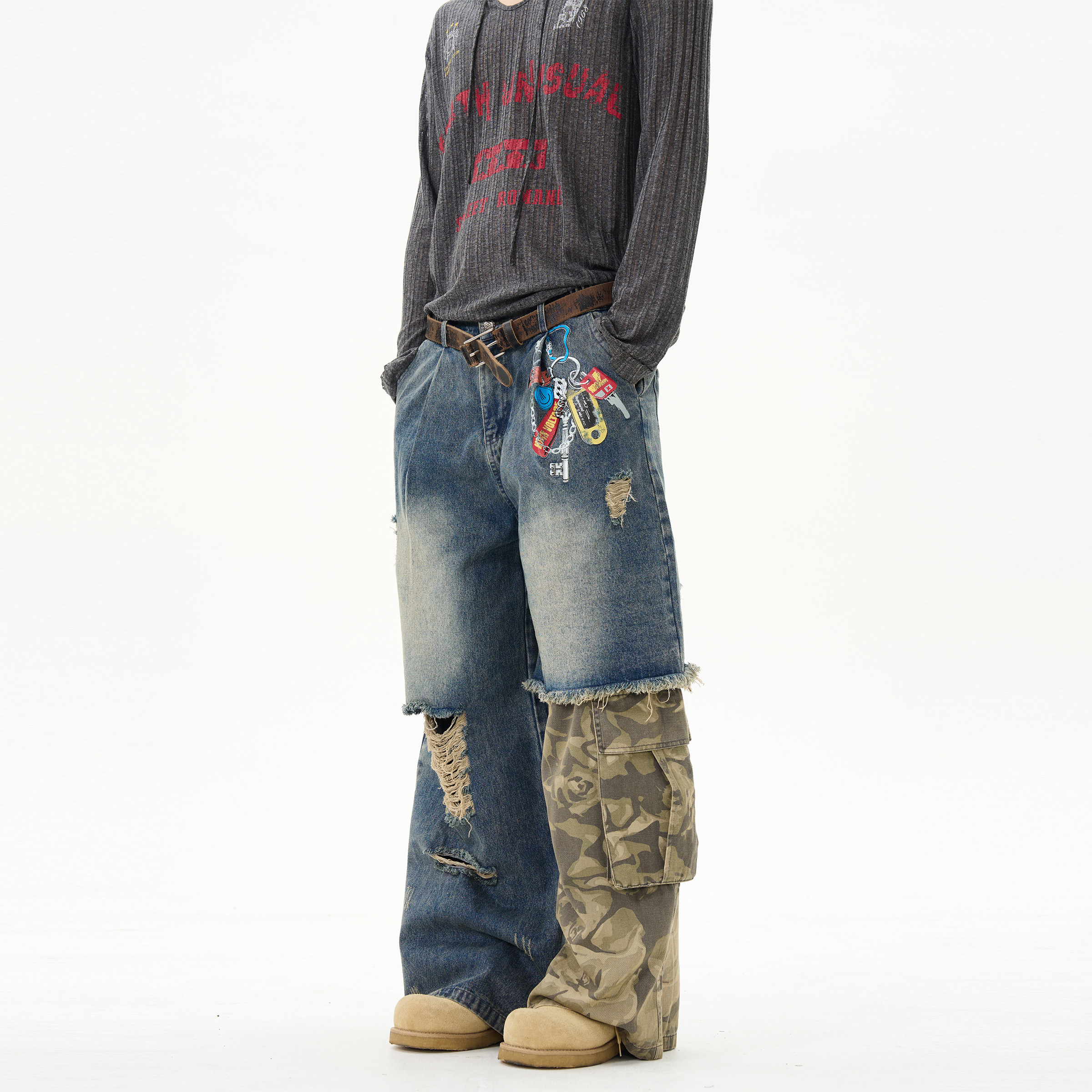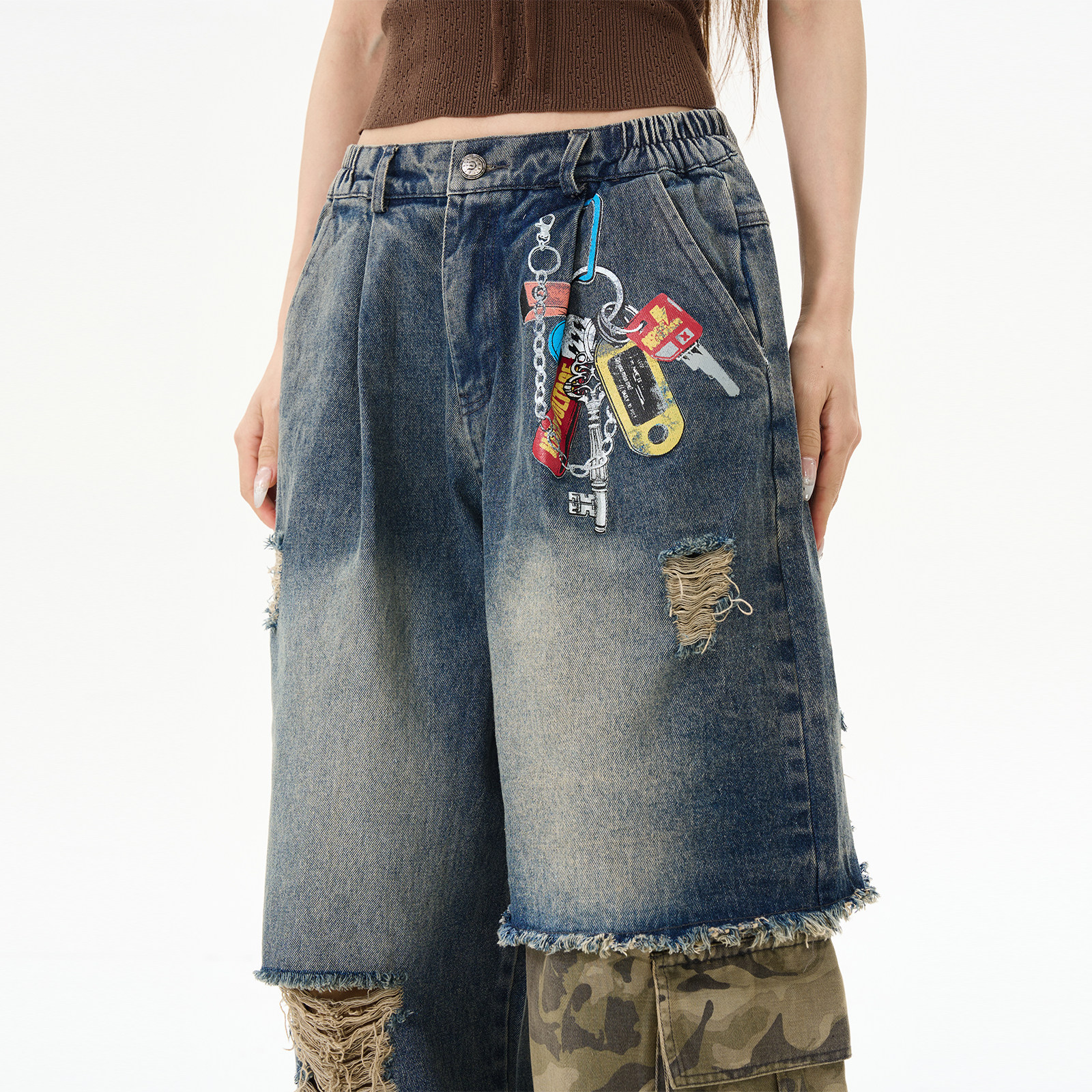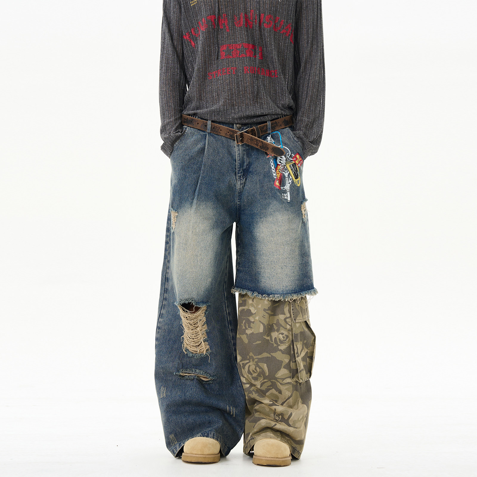 Камуфляжные джинсы, штаны для влюбленных, в американском стиле, изысканный стиль