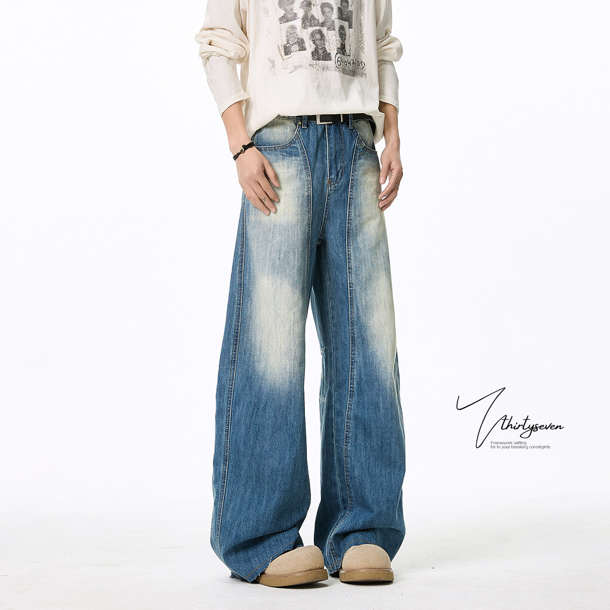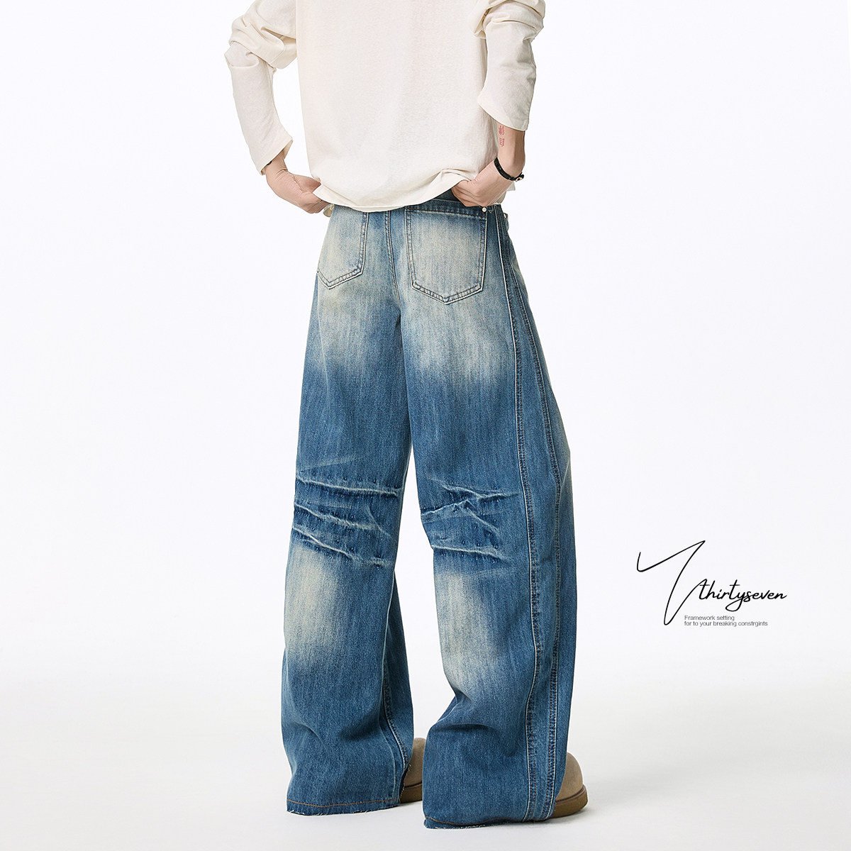 V37 Синие осенние штаны, джинсы, в американском стиле, свободный крой