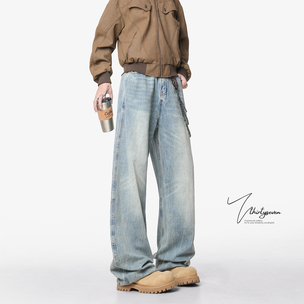 V37 Весенние ретро джинсы, штаны, градиент, тренд сезона, в американском стиле, свободный прямой крой