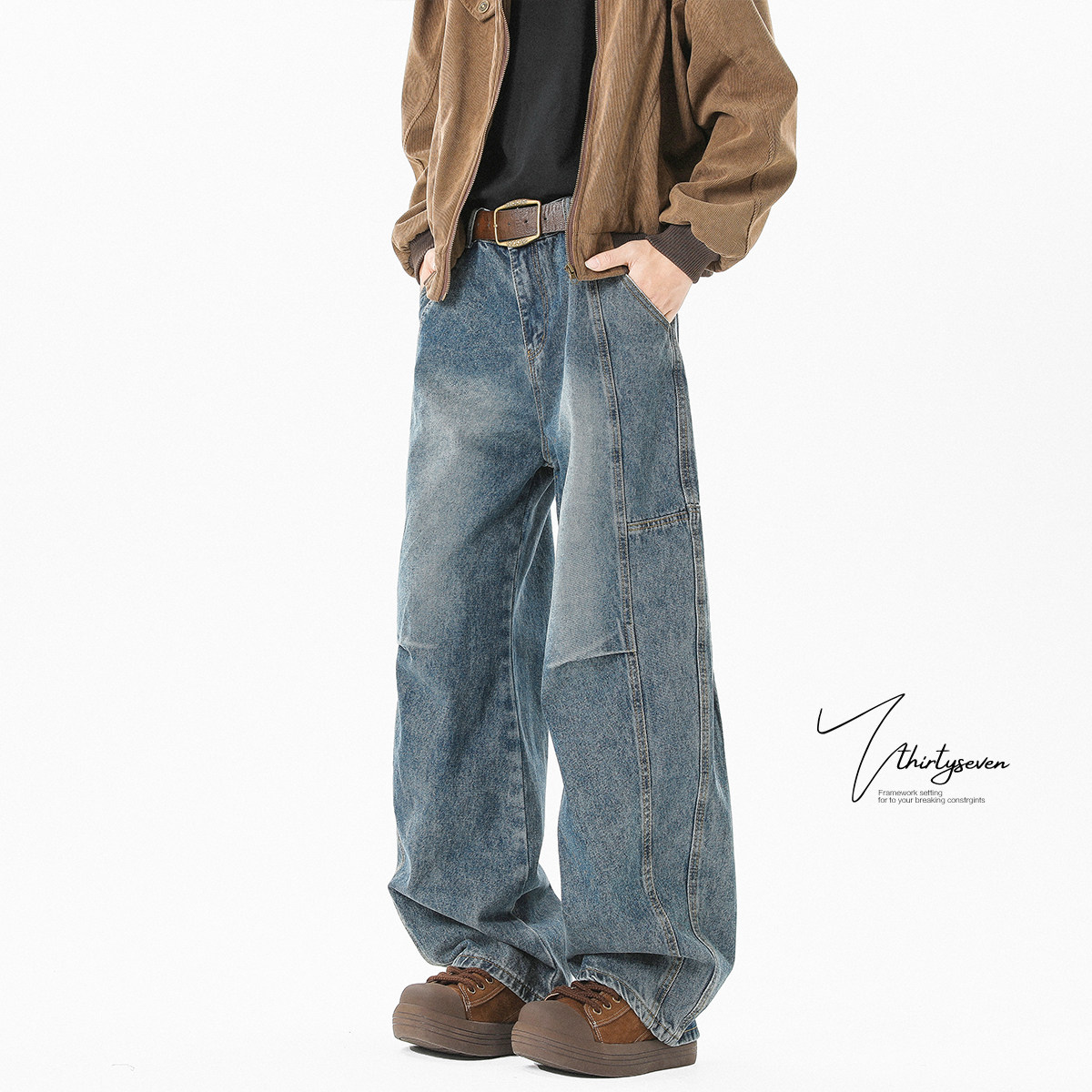 V37 Летние джинсы, штаны, в американском стиле, градиент, подходит для подростков, свободный прямой крой