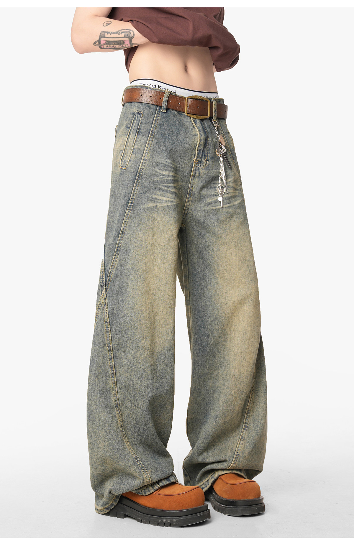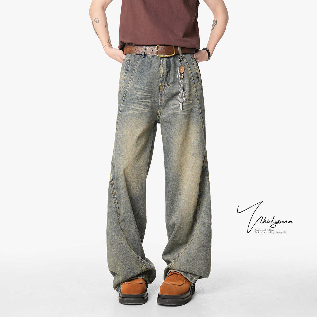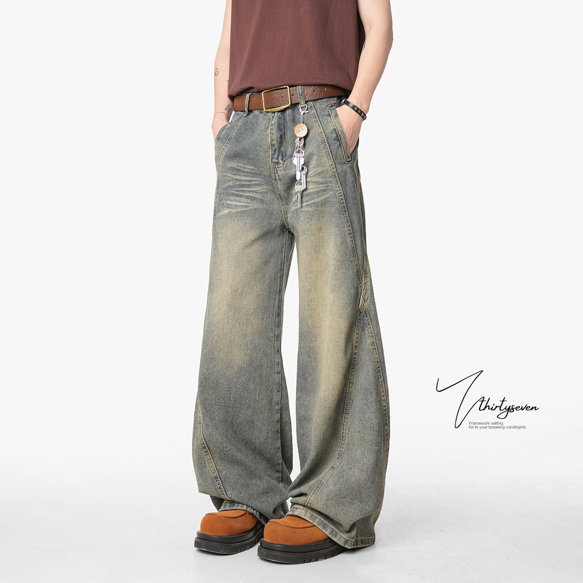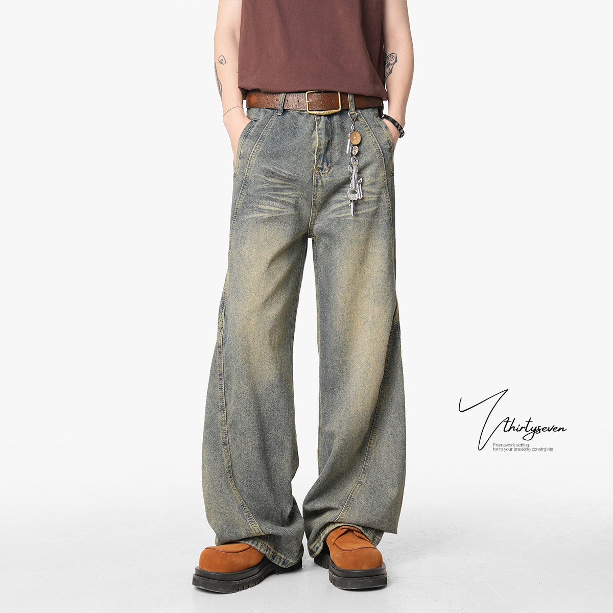 V37 Ретро весенние джинсы, дизайнерские штаны, в американском стиле, тренд сезона, оверсайз, свободный крой