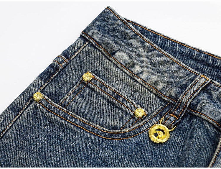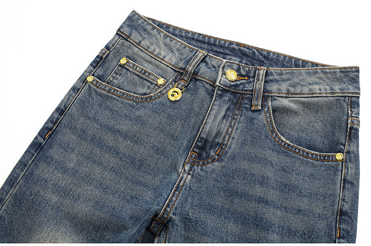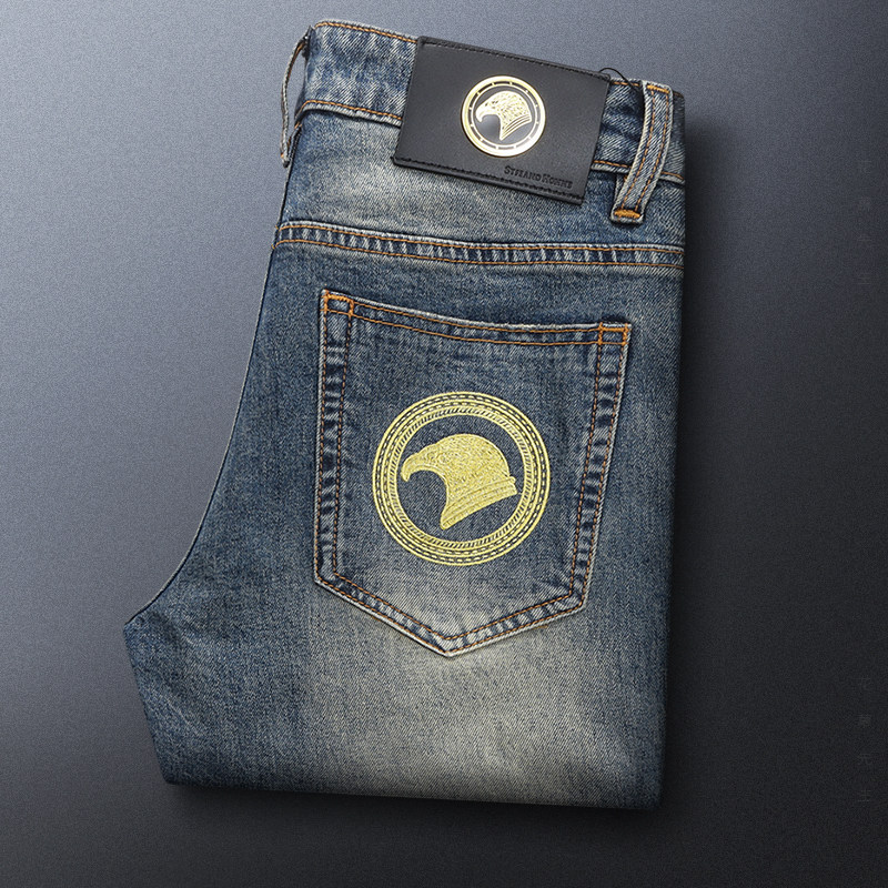 Джинсы, летняя хлопковая мягкая эластичная мягкая пуля, штаны, с вышивкой, облегающий крой, свободный прямой крой