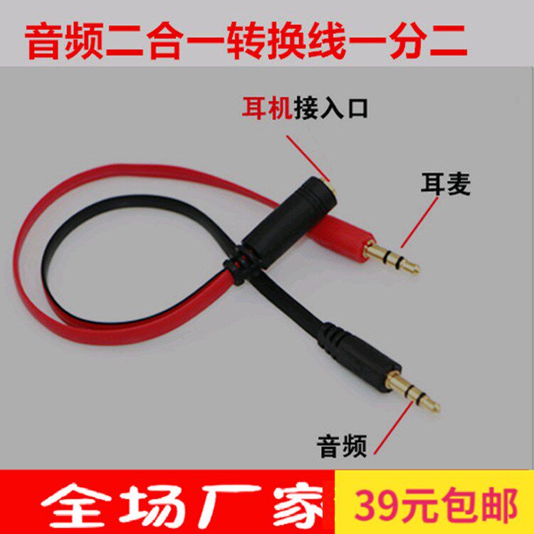 Наушники, мобильный телефон, ноутбук, кабель-переходник, 2 в 1, 3.5мм
