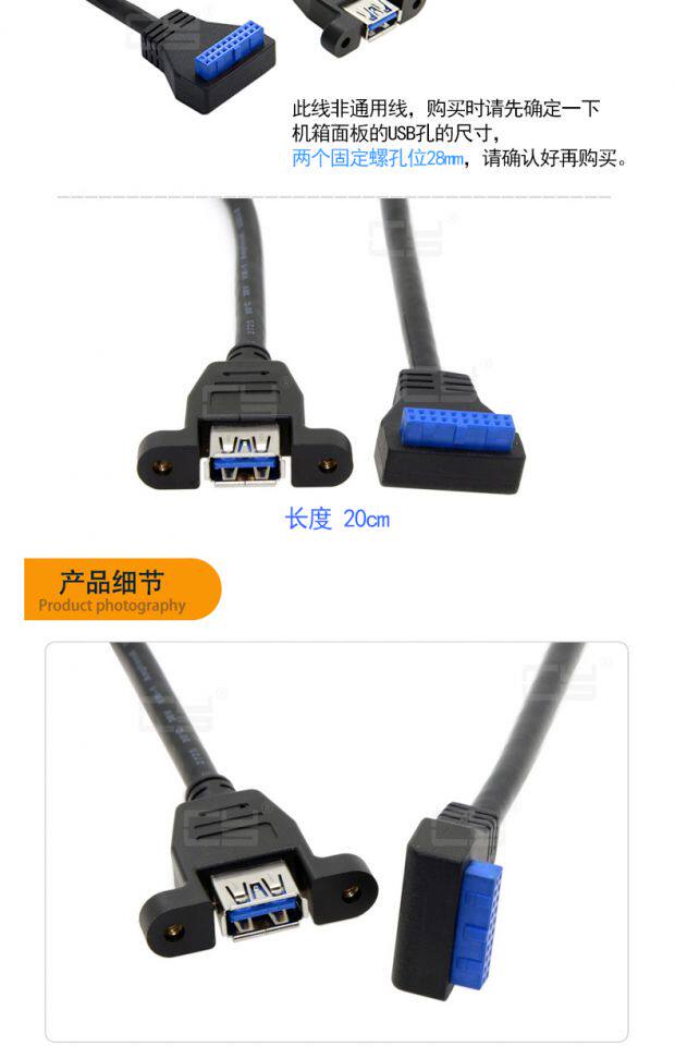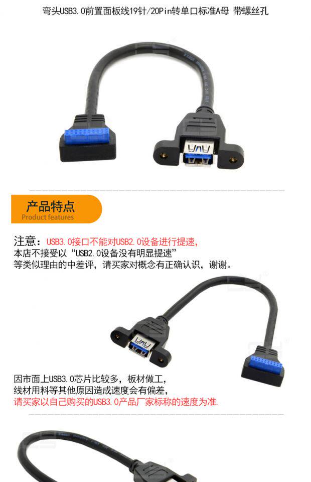 Материнская локоть локоть USB3.0 Линия передней панели 19 PIN -штифт/20pin Перенос Одиночный порт Стандарт Мать с винтным отверстием