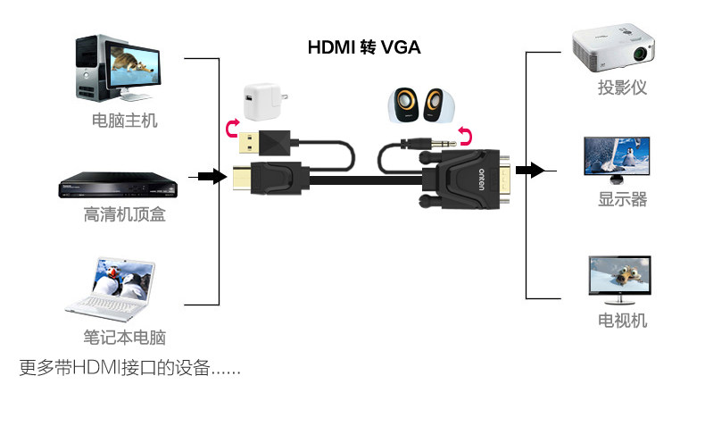 HDMI в VGA High -Definition Line с ротор ротор ротор звука