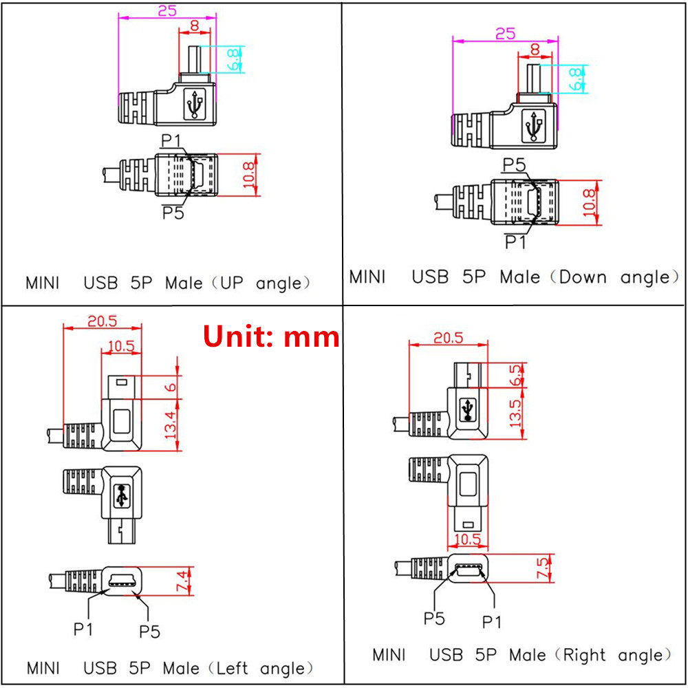 USB2.0 Hard Disk Digital Camera Camera Cable Кабель данных Т-образный порт Am-Mini 5p вверх, вниз, слева, слева, влево, правое изгиб 90 ° 3 метра