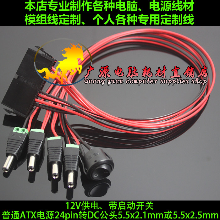 ATX Power Power Supply 24PIN в DC HEAD 12V Player Cloud 24 -PIN DC MALE HEAD CABLE, с переключателем START -UP