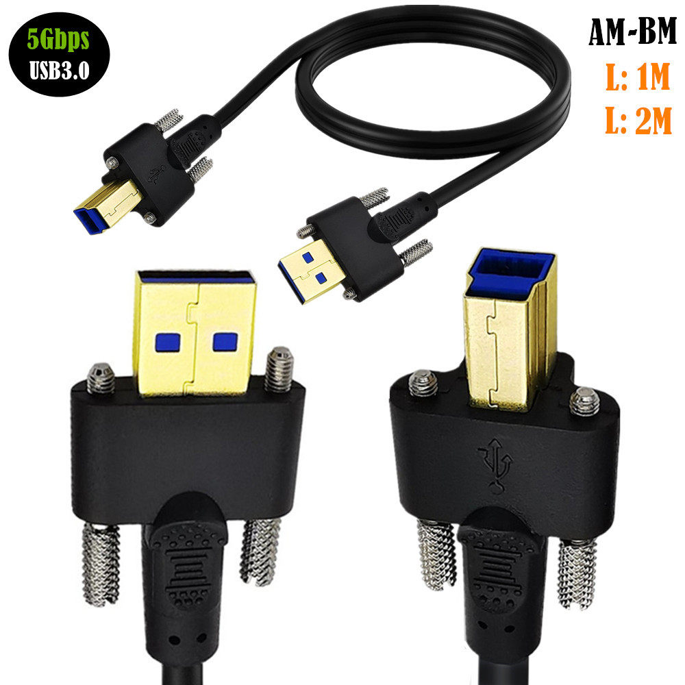 Линия печати USB3.0 с фиксированным винтовым кабелем данных USB AM для BM с двойным винтом M3 Model High -Speed Gold