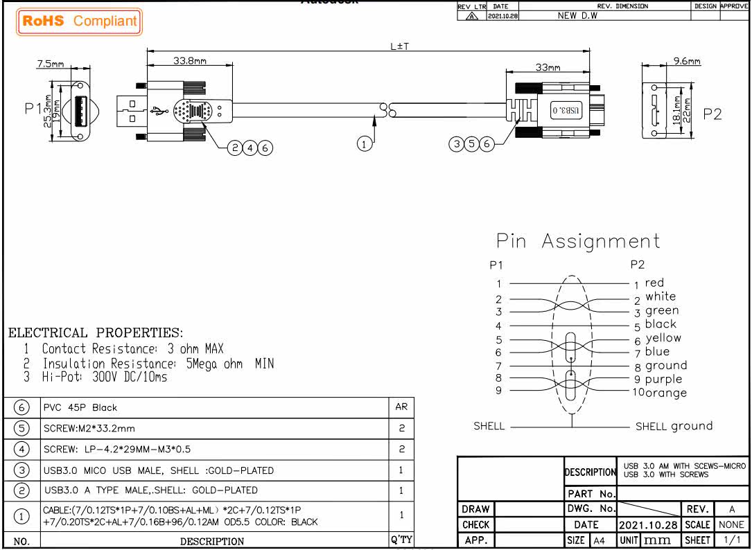 | Длина: | 1m, 2m, 3m |