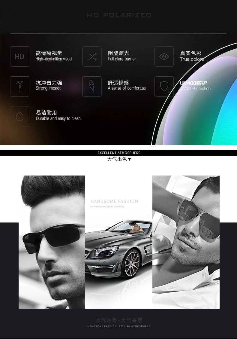 Двойное использование обесцвеченных очков мужские солнцезащитные очки поляризованные солнцезащитные очки мужчины водителя водителя рыбалки
