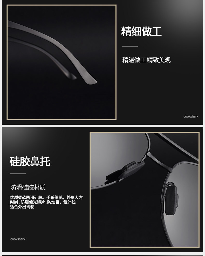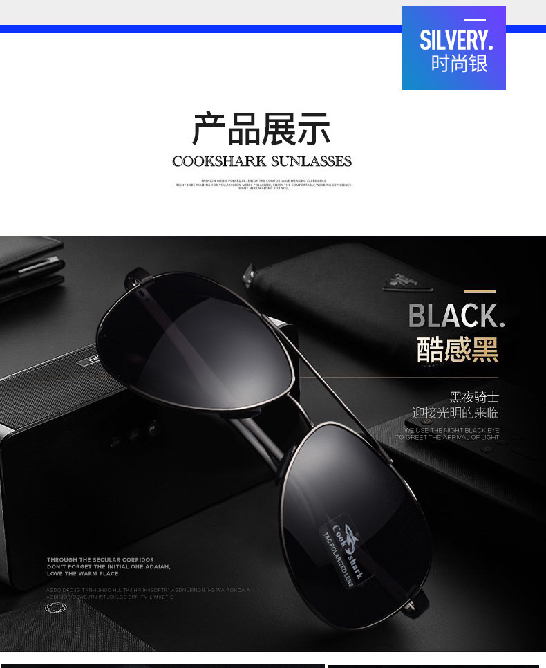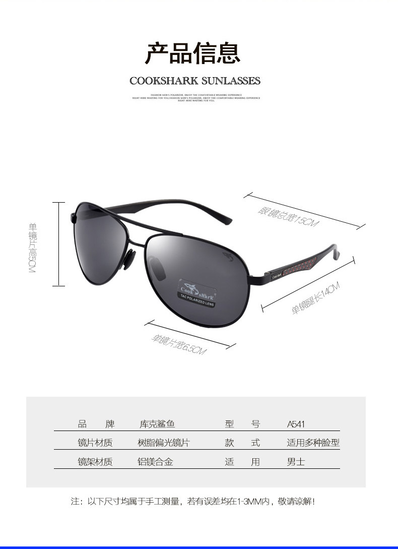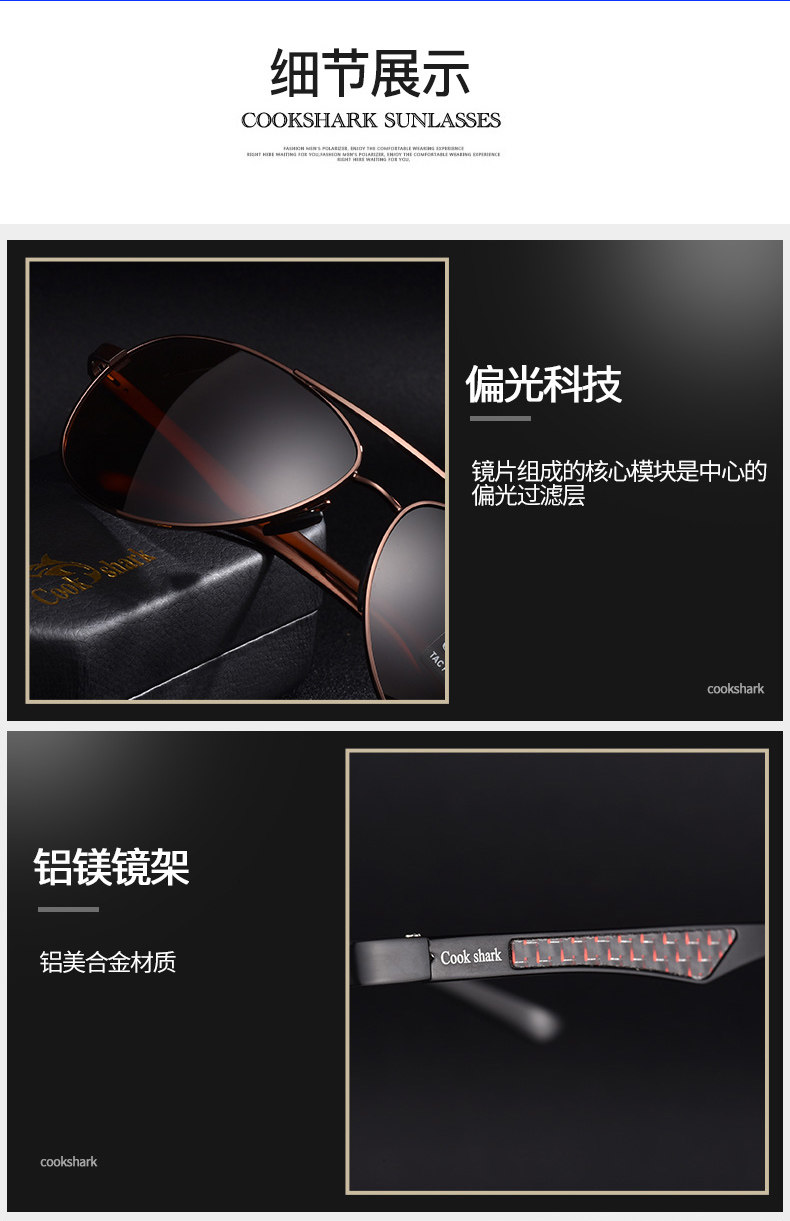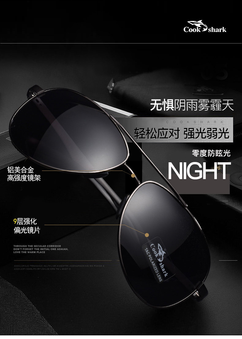 Cookshark Cook Shark Polarized Мужские мужские водитель зеркал новые солнцезащитные очки мужской прилив