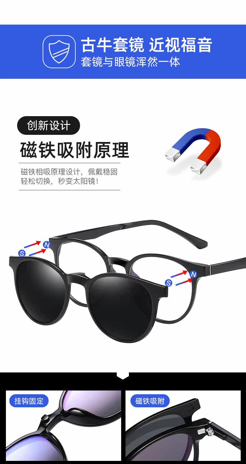 Солнцезащитные очки Myopia Установите магнитное магнитное мужское полярное лицо с определенной степенью солнцезащитных очков, зеркало мужчины и женщины 2122