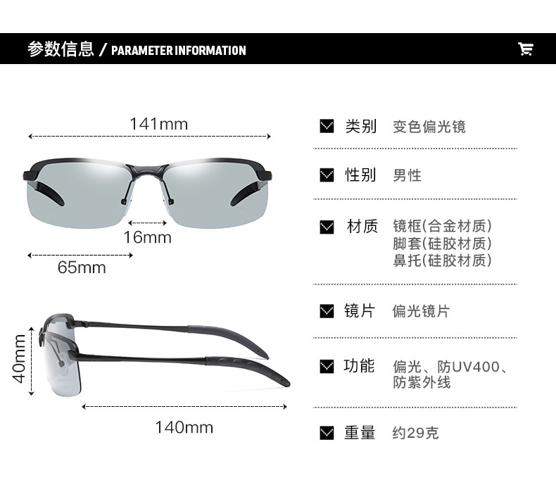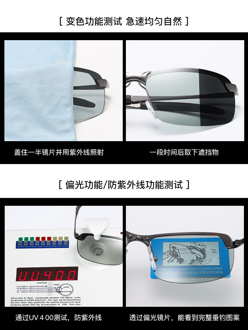 - Поляризованные видео с поляризованной черной рамой [коробчатая ткань] Когда ультрафиолетовые лучи сильнее, изменения цвета глубже, а свет сохраняется, когда не силен