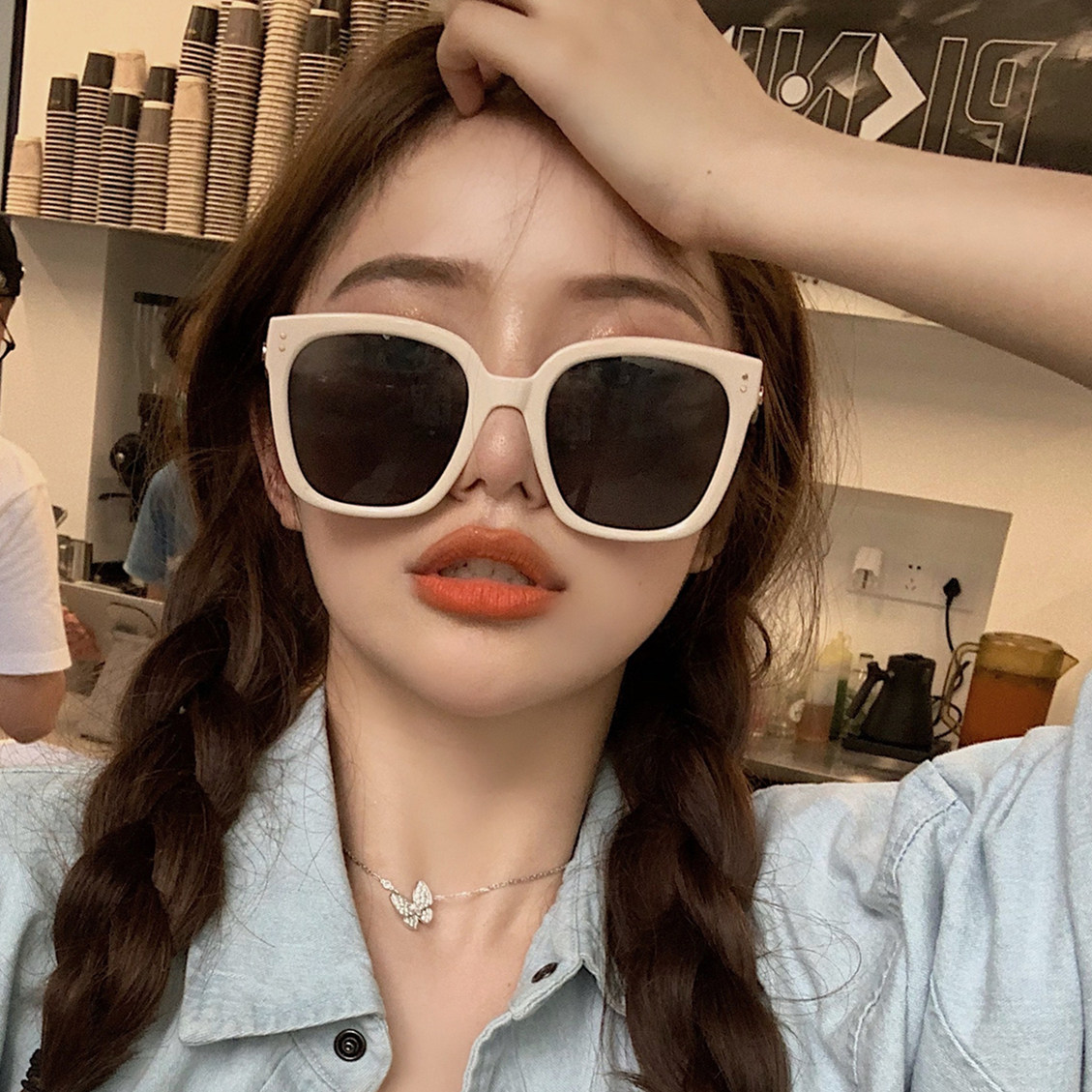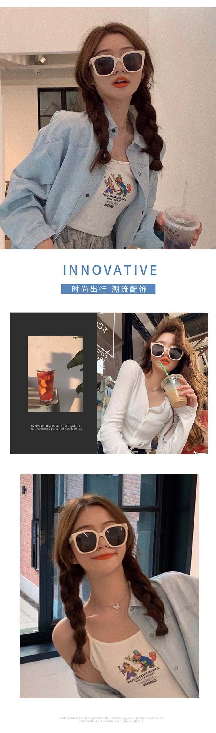 Белые квадратные солнцезащитные очки на солнечной энергии, популярно в интернете, изысканный стиль