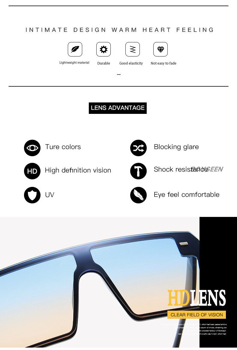 BOYSEEN Ретро большие солнцезащитные очки подходит для мужчин и женщин, европейский стиль