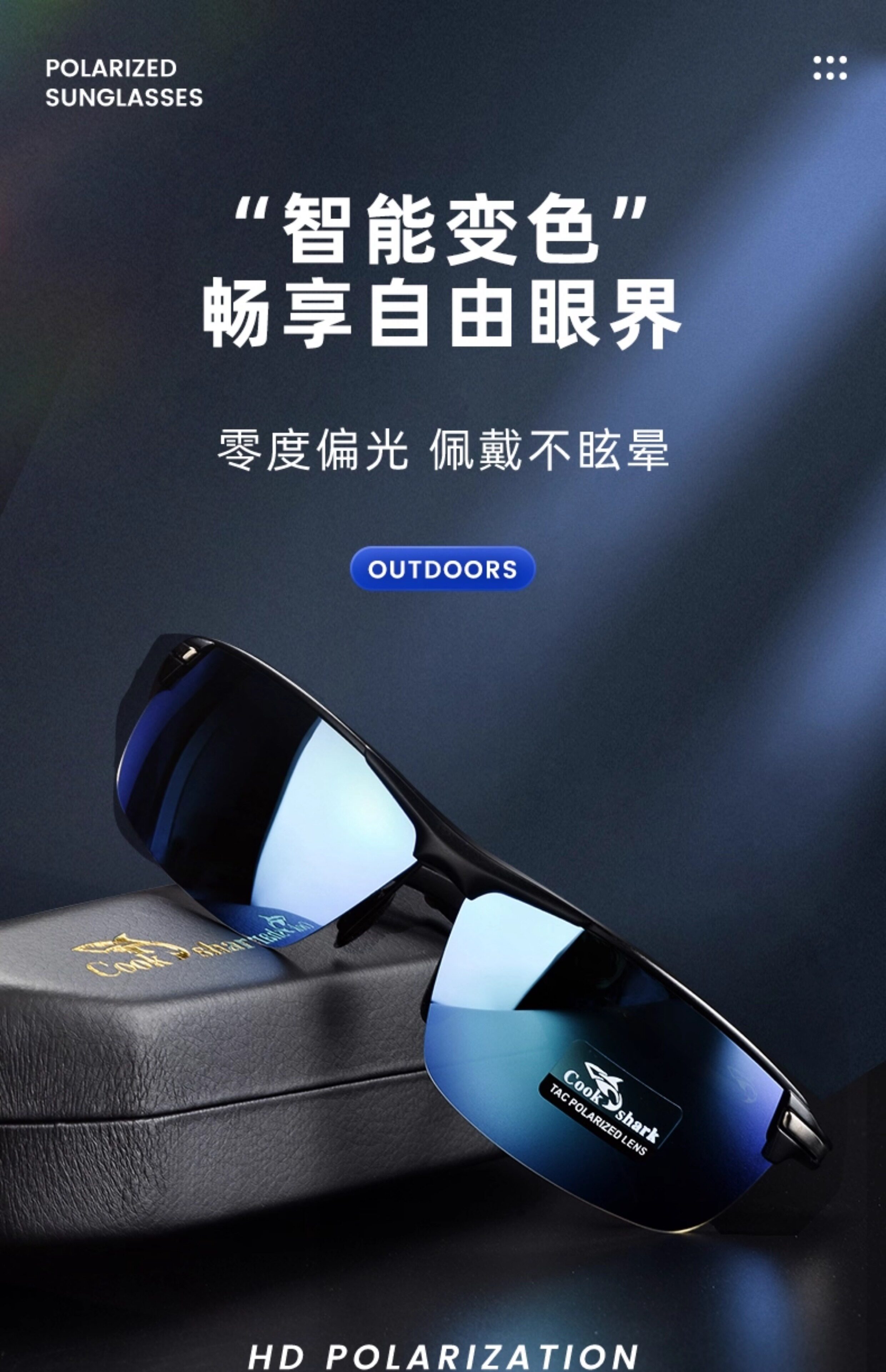 Поляризационная акула, мужские дорожные спортивные ультрафиолетовые солнцезащитные очки, защита от ультрафиолета, мужской стиль
