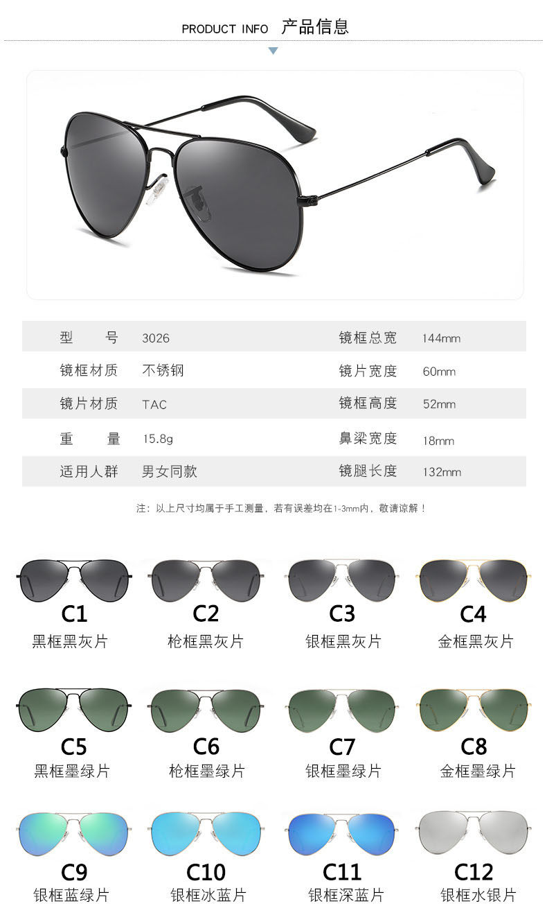 Поляризованные солнцезащитные очки мужской пилот 3026 Цветной фильм самка Том Хамади Китайские солнцезащитные очки