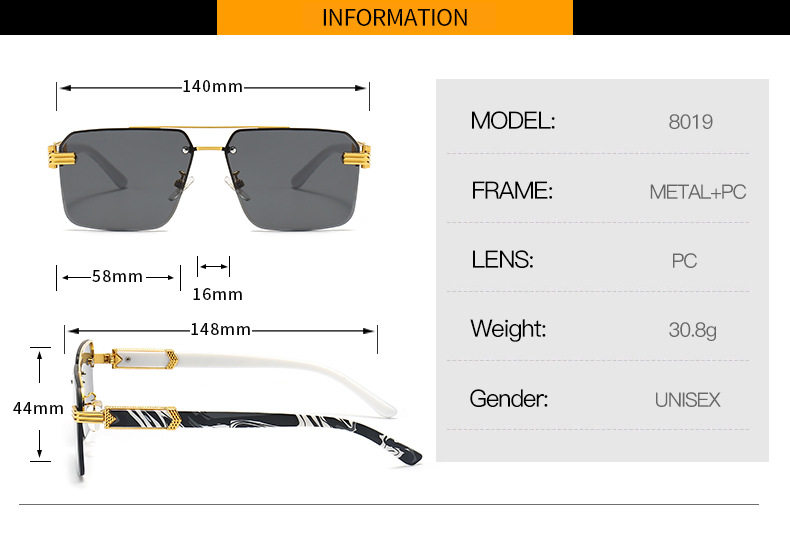 BOYSEEN Квадратные металлические мраморные солнцезащитные очки подходит для мужчин и женщин, в стиле панк