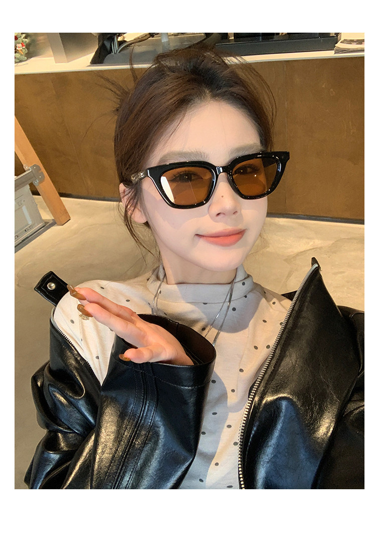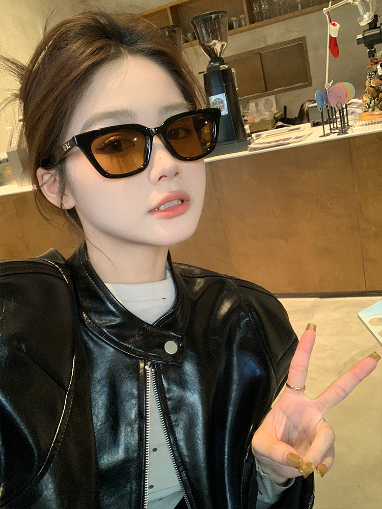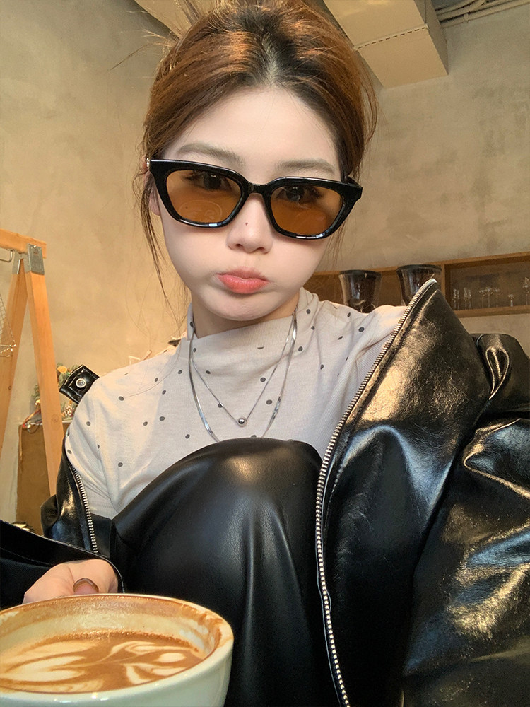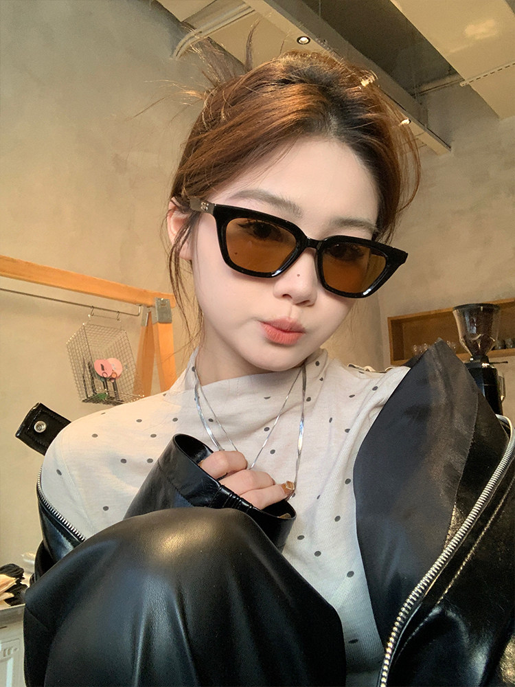 Коричневые солнцезащитные очки подходят для женщин с большими лицами, стройные бокалы с черными черными каркасами, летние популярные солнцезащитные очки из ультрафиолетового ультрафиолета,