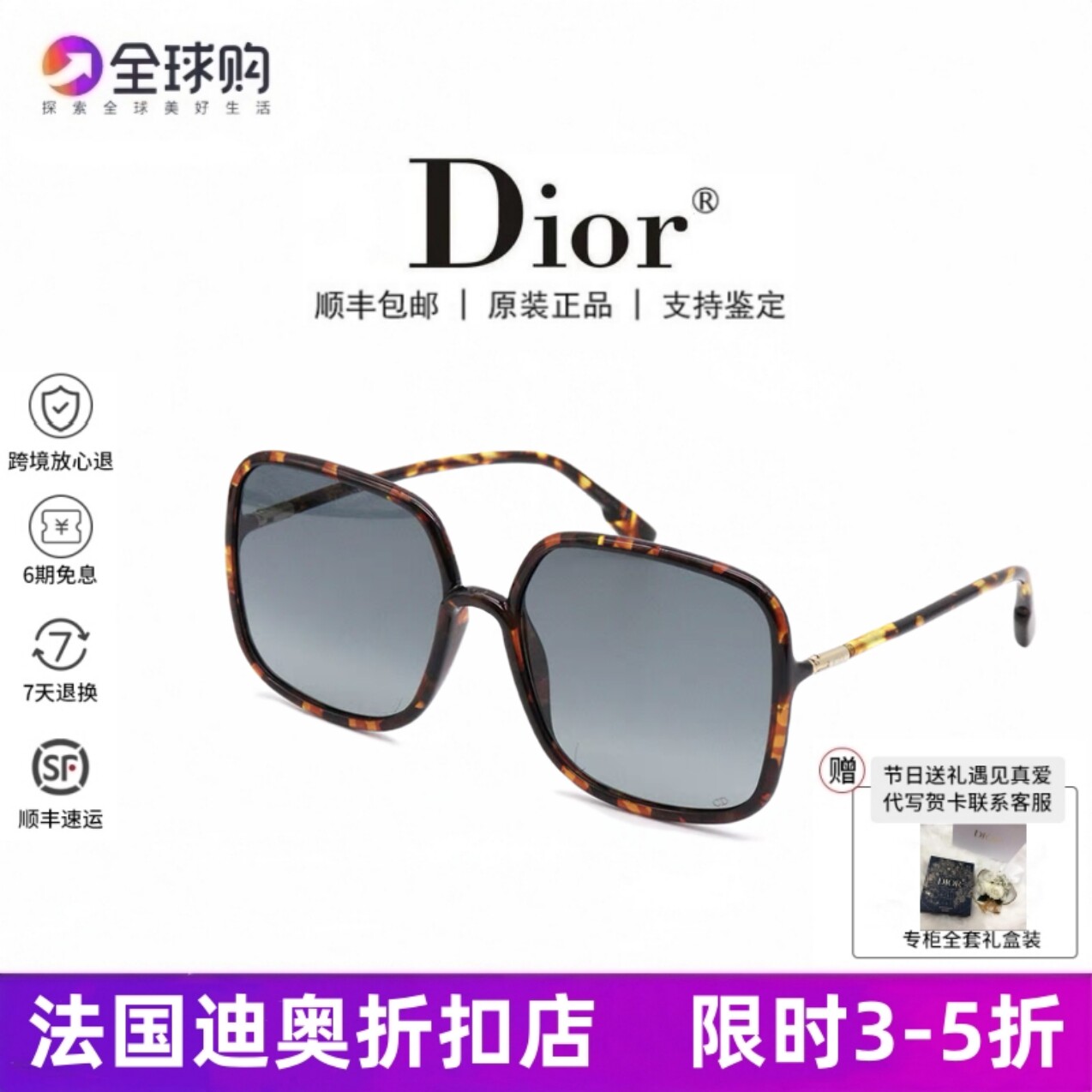 Подлинная покупка солнцезащитных очков Dior/Dior Женская Stellaire1 Квадратная коробка Zhou Yangqing те же солнцезащитные очки