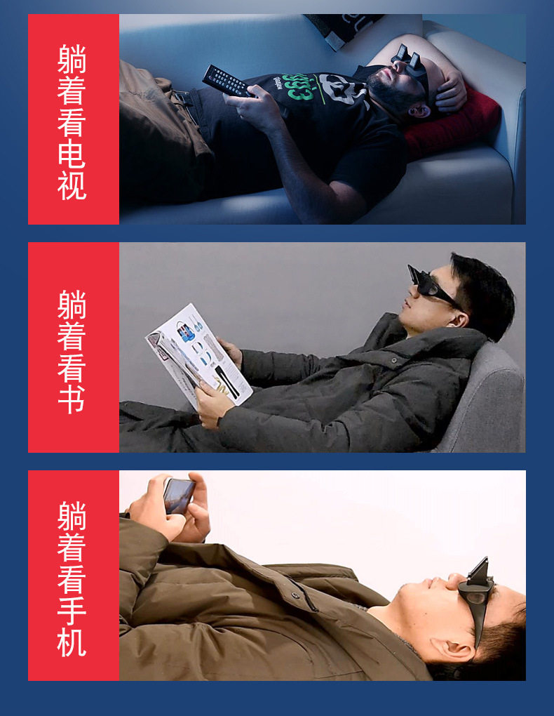 Новые HD Lazy Glasses Горизонтальные очки, лежащие для чтения книг, а телевизионные миопии отражают глаза, играя с мобильным световым трендом