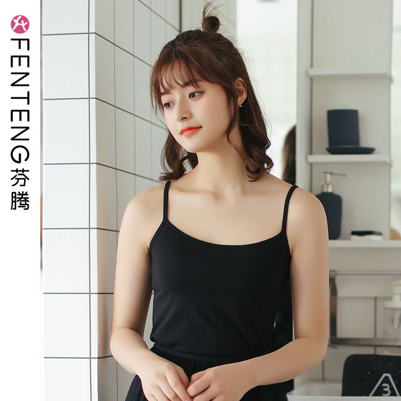 芬腾 Тонкий летний сексуальный короткий приталенный черный базовый приятный телу топ с чашечками без рукавов