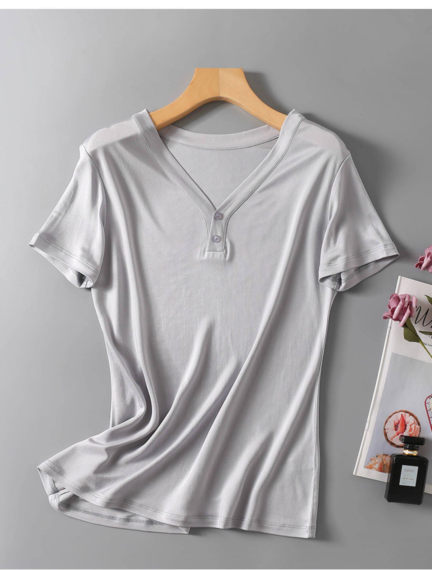 Трикотажный жилет, шелковая рубашка, футболка, V-образный вырез, свободный крой, короткий рукав