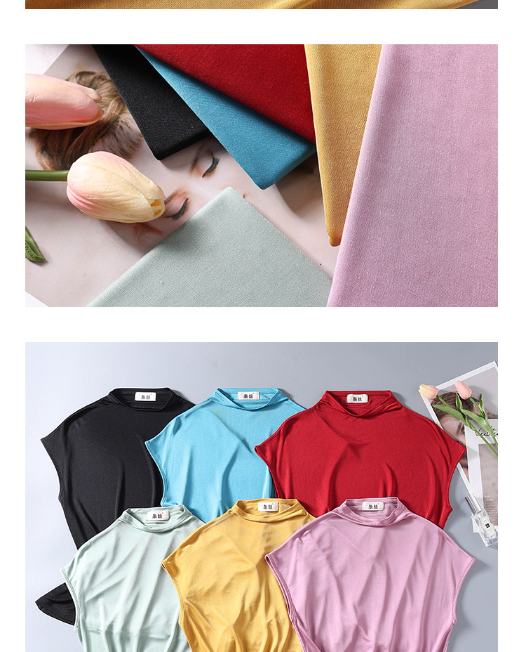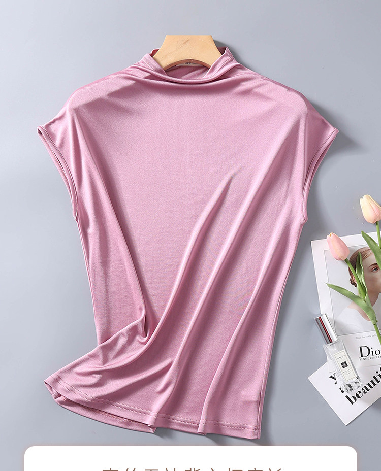 Летняя шелковая цветная футболка с коротким рукавом, рубашка, высокий воротник