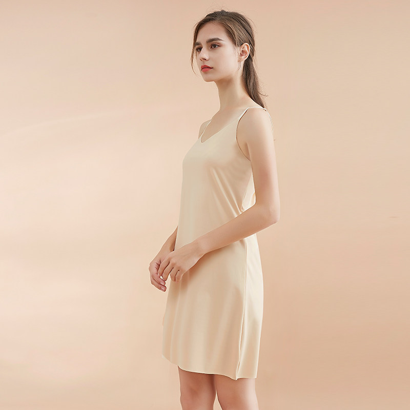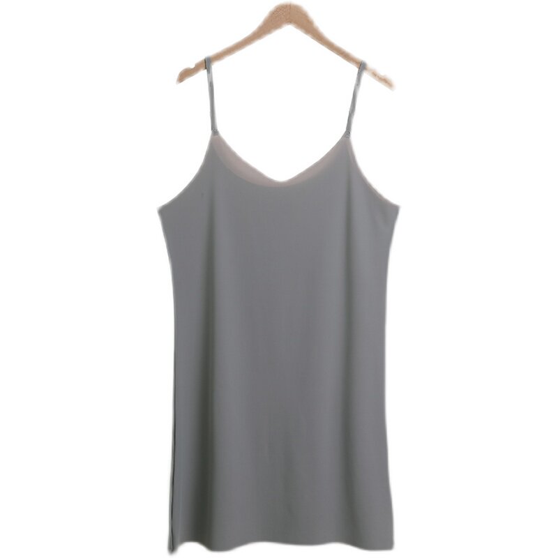 Сексуальная тонкая пижама без рукавов, летнее защитное белье, длинный базовый топ с чашечками, средней длины