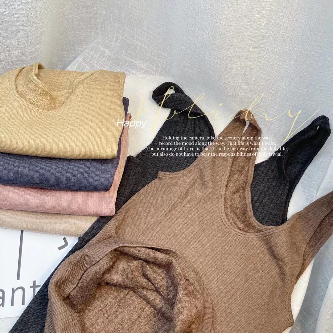 Демисезонное удерживающее тепло нижнее белье, приталенная приятная телу майка топ с круглым воротником, для маленькой груди