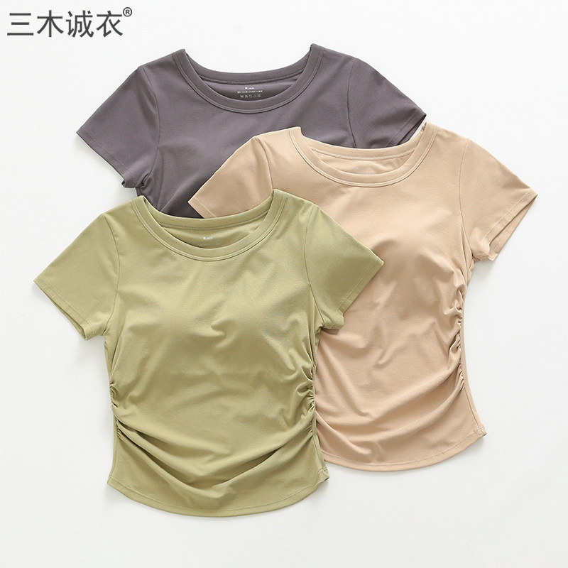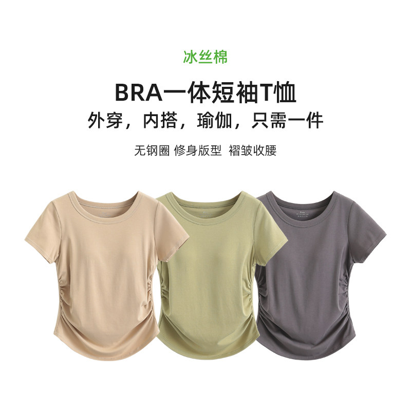 Бюстгалтер, футболка с коротким рукавом, топ с чашечками, нижнее белье с круглым воротником, базовая одежда для йоги, облегающий крой