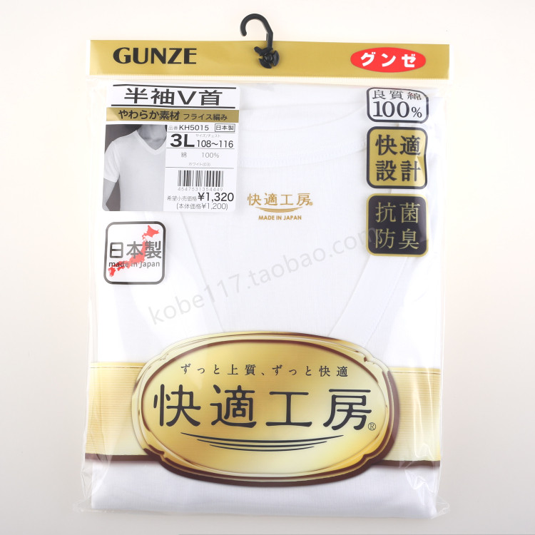 Япония Импортированное округ-это Gunze-Fast-Metracted Foot Men's V-Heart-Collar Футболка 100%хлопок KQ5020