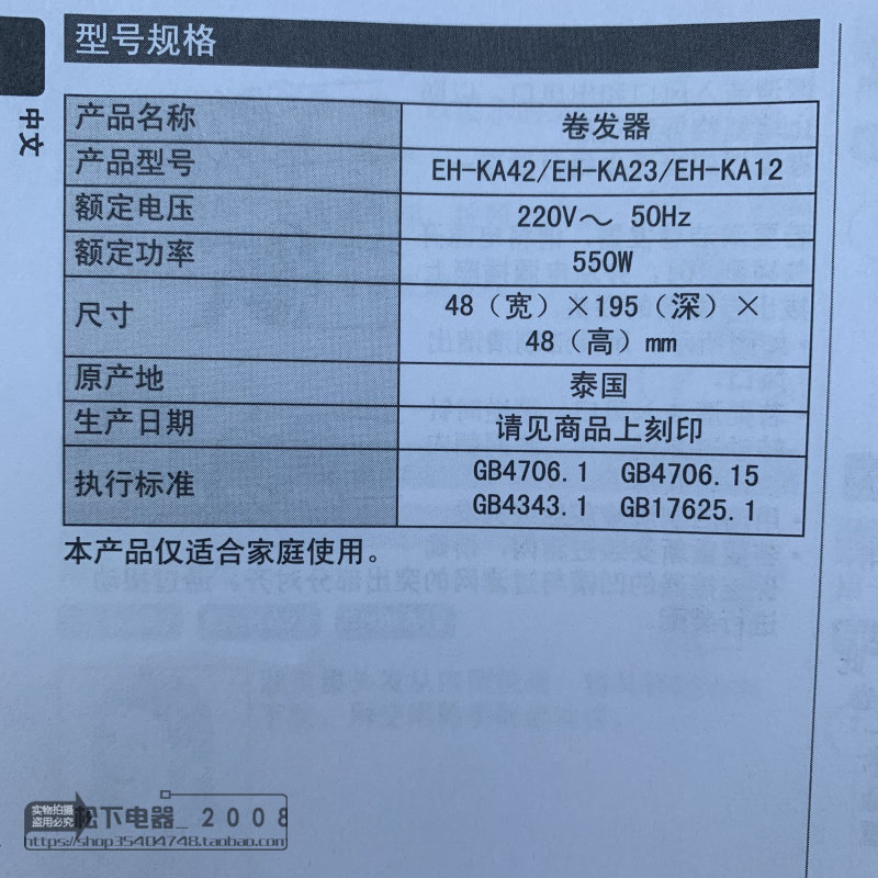 Продавец:松下电器生活店 13261286266刘小姐