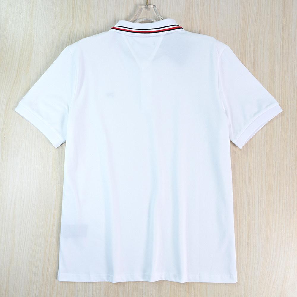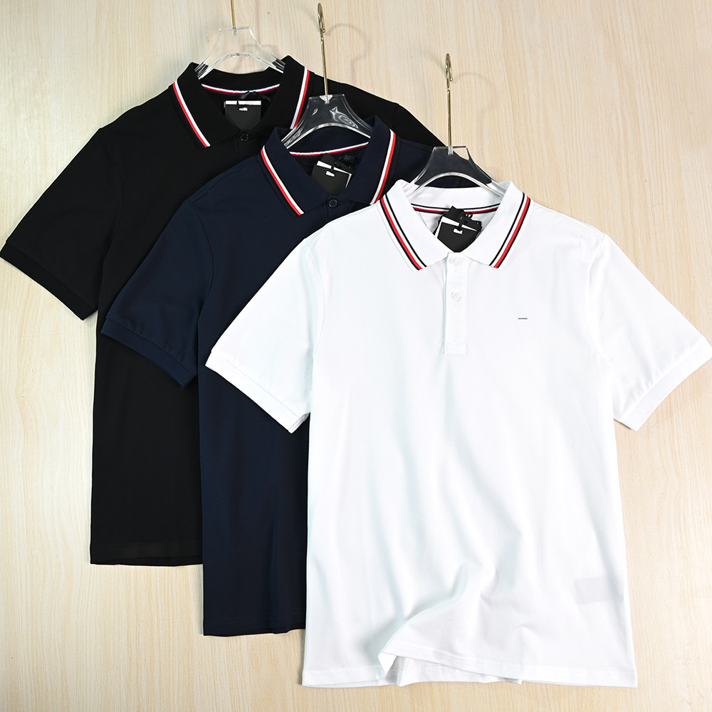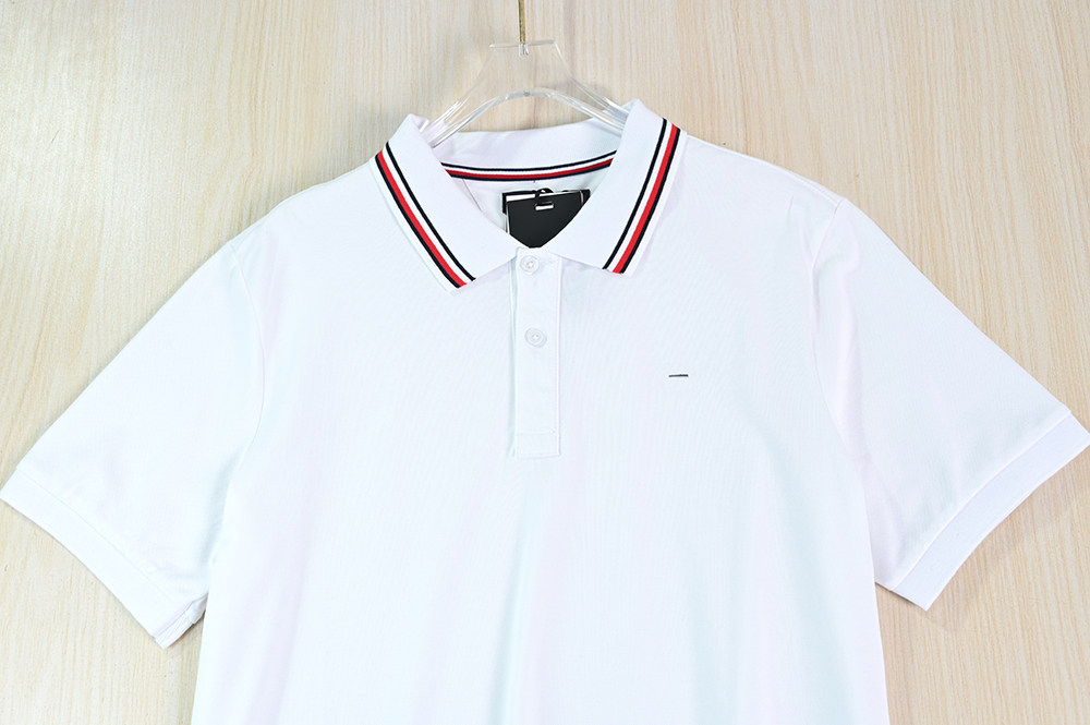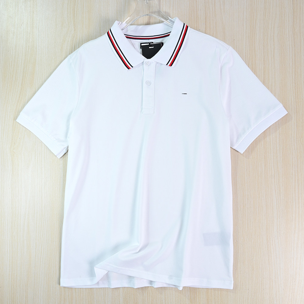 Рекомендуемые товары для мужской одежды 2512/8 Повседневная рубашка-поло из хлопка пике с контрастным воротником в американском стиле Тан с вышивкой и маленькой этикеткой с короткими рукавами