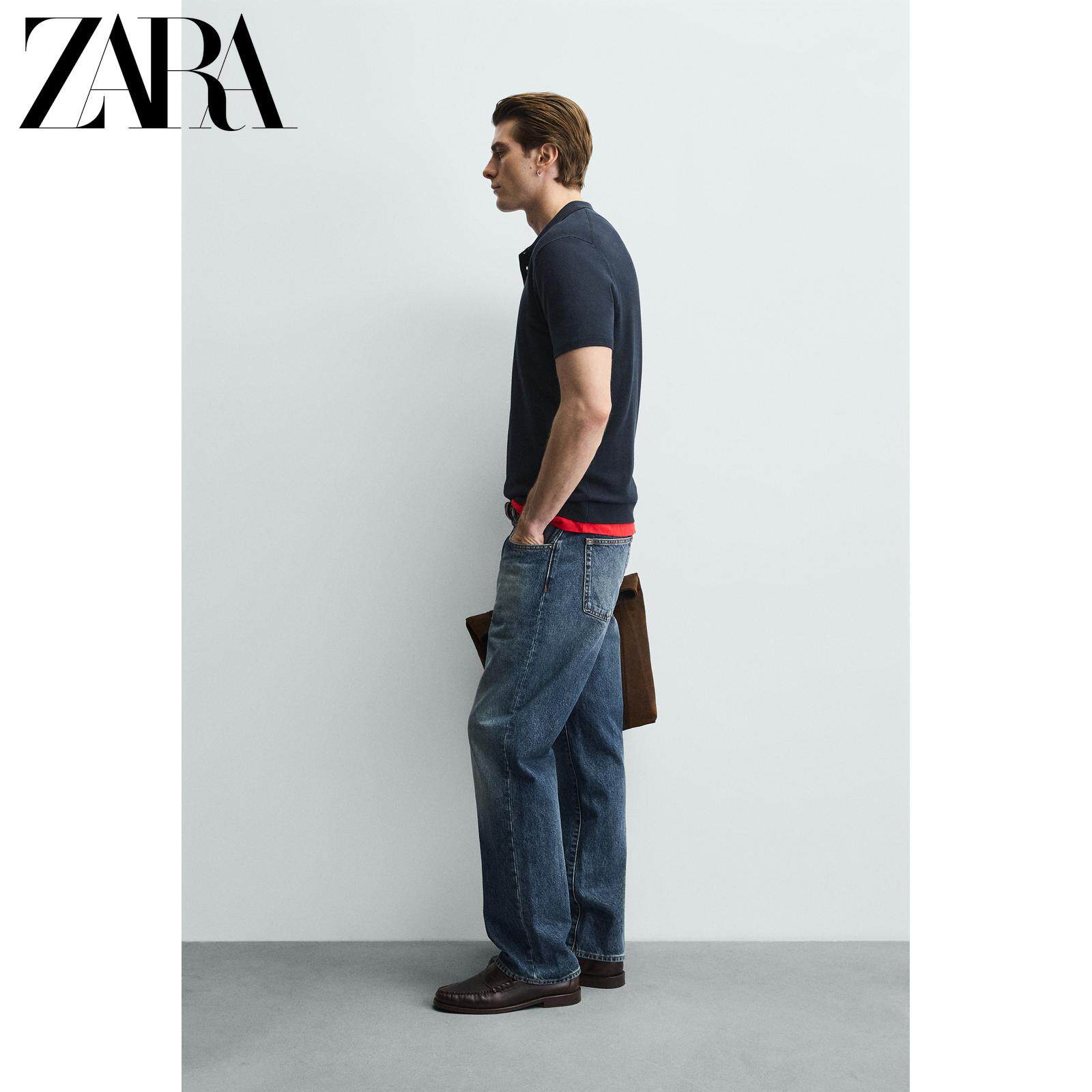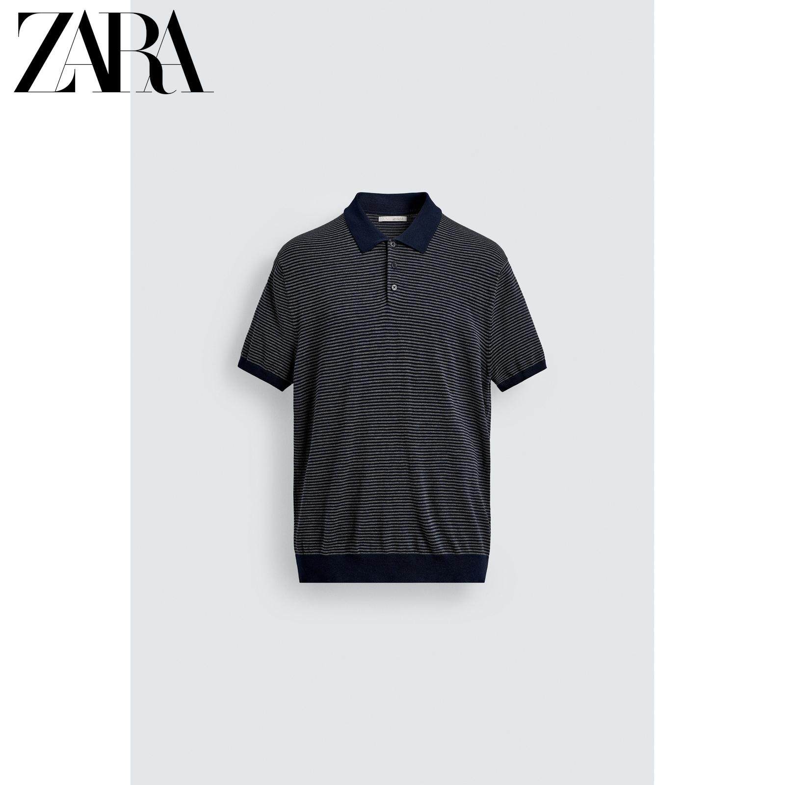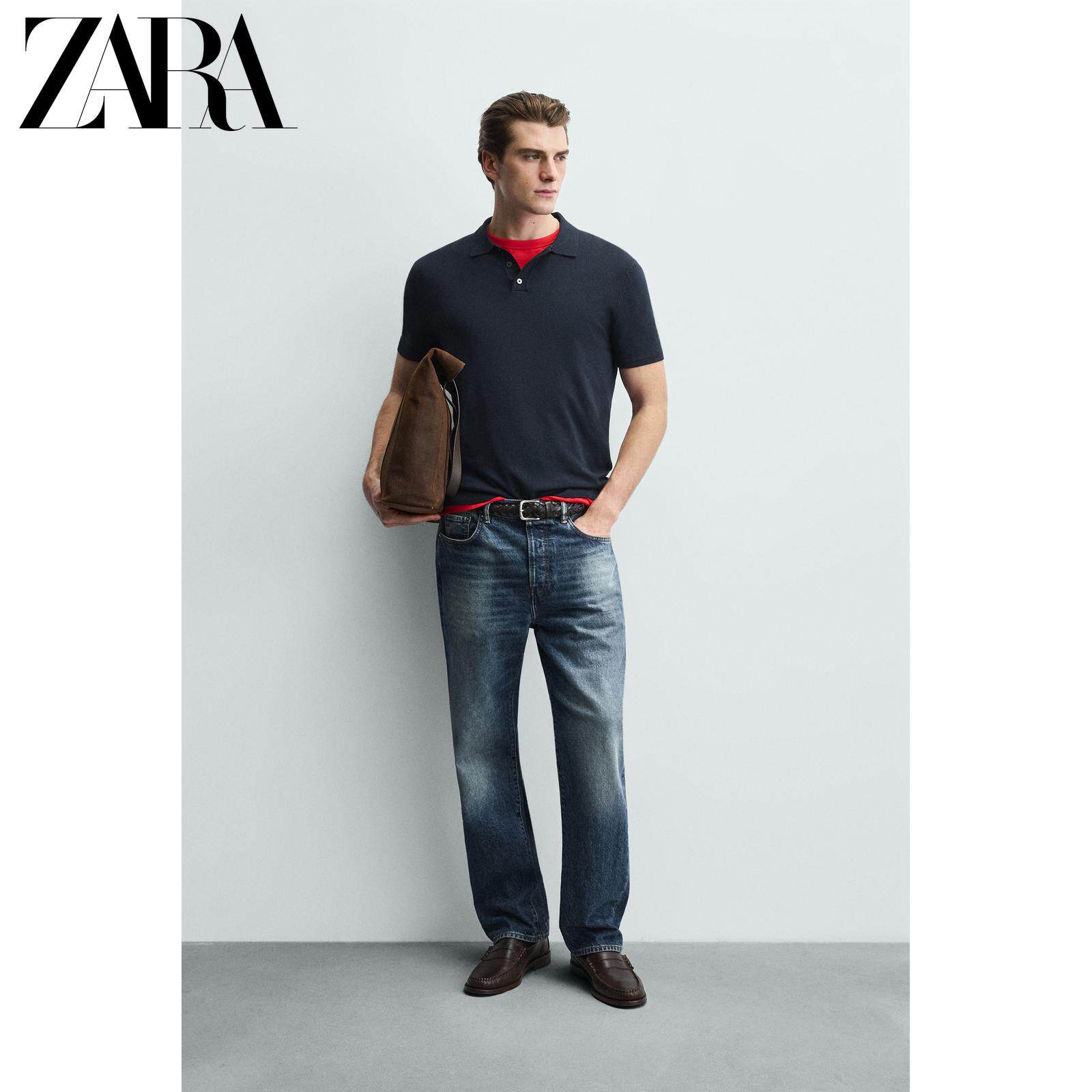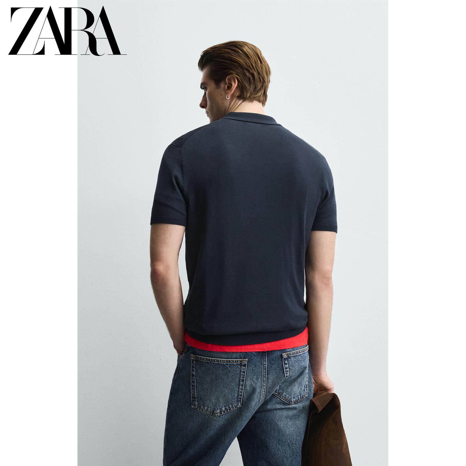 ZARA Зимняя трикотажная футболка polo, свободный прямой крой, короткий рукав