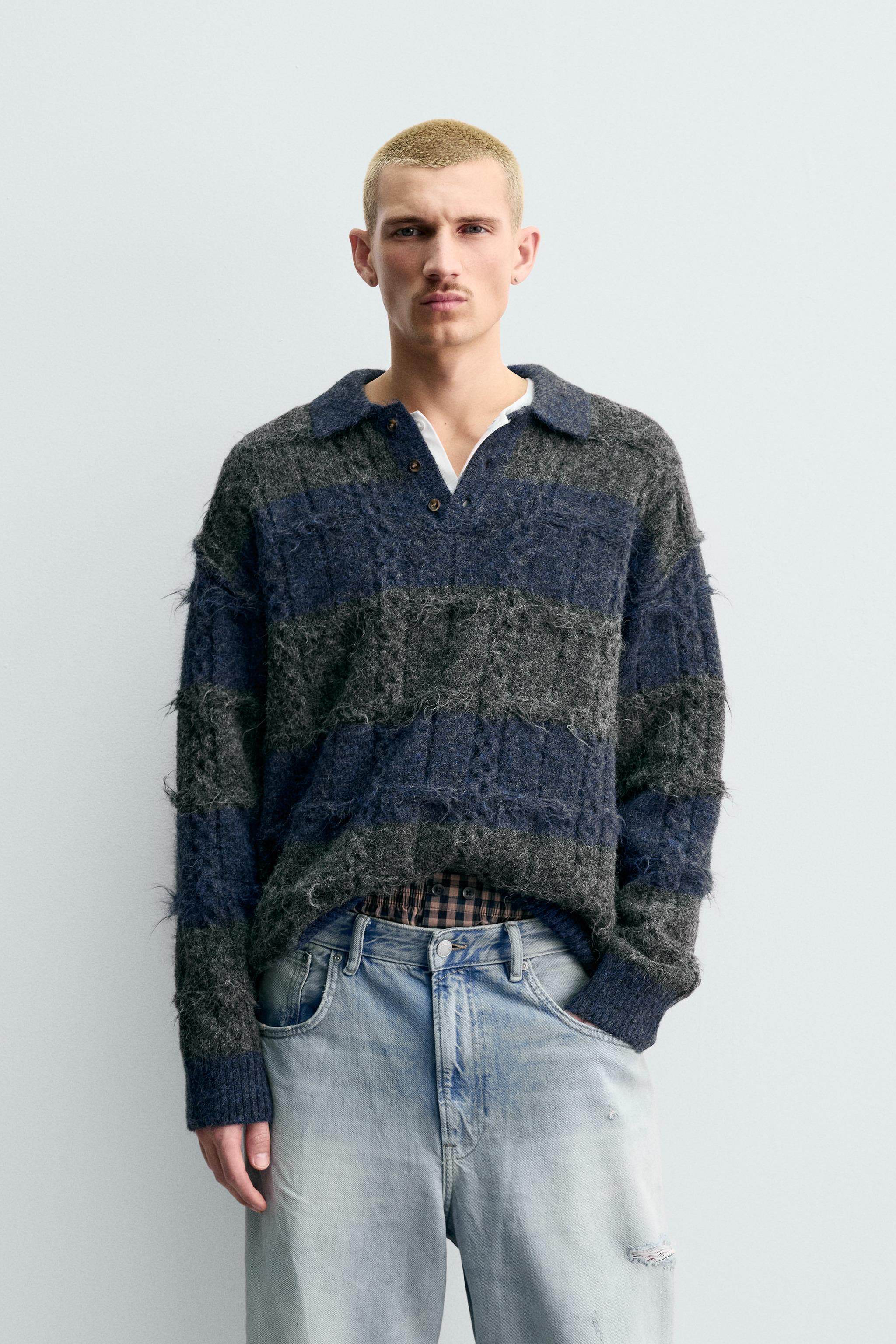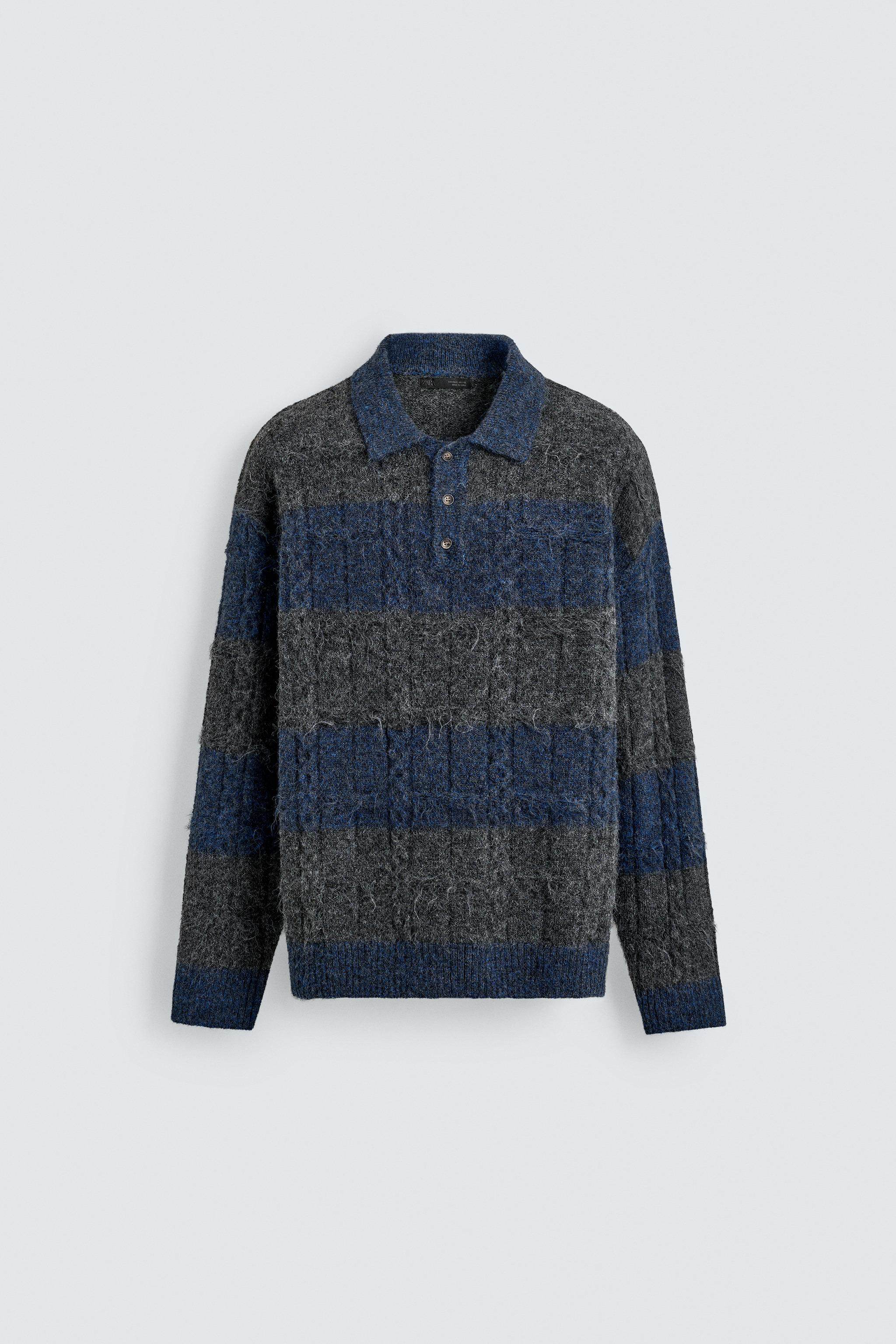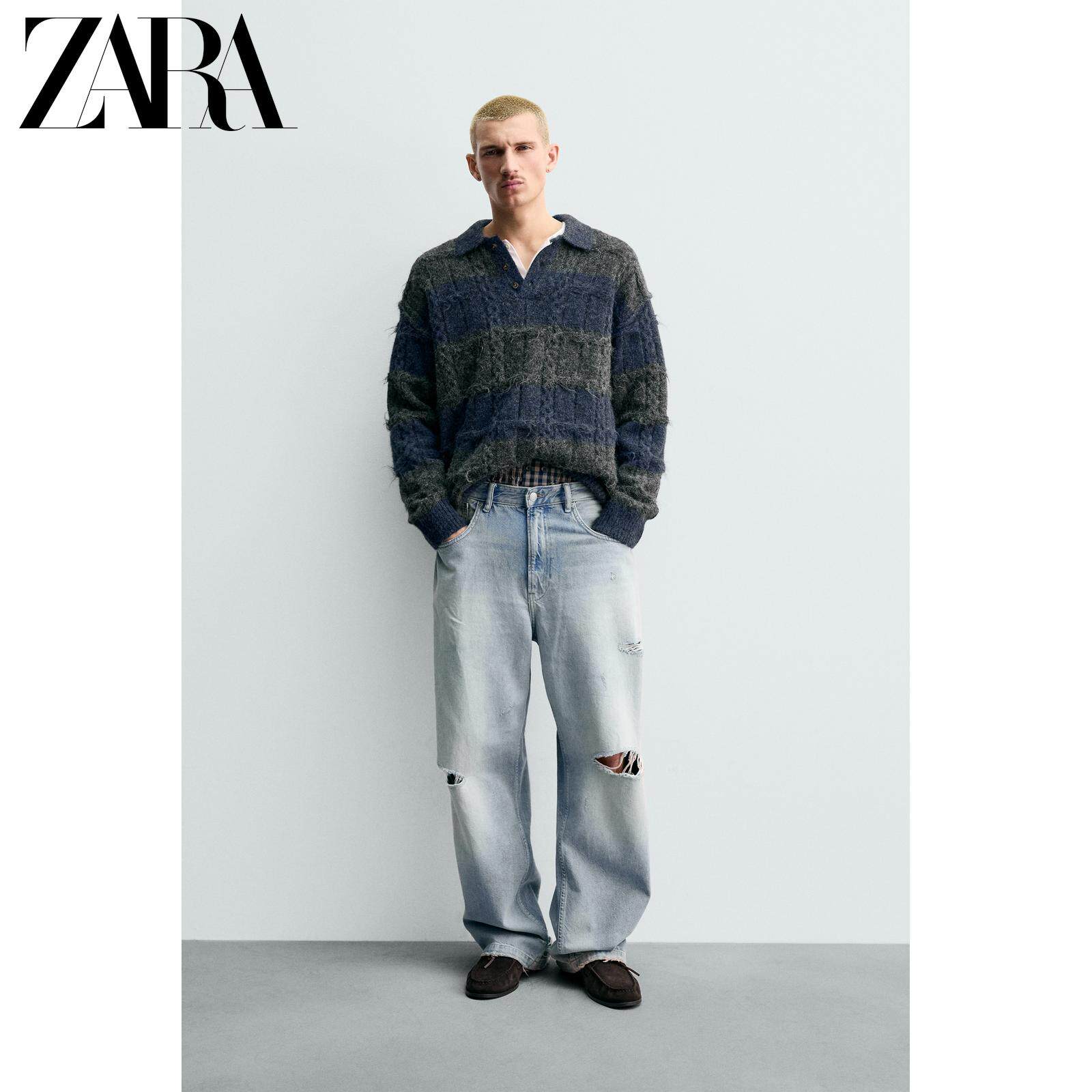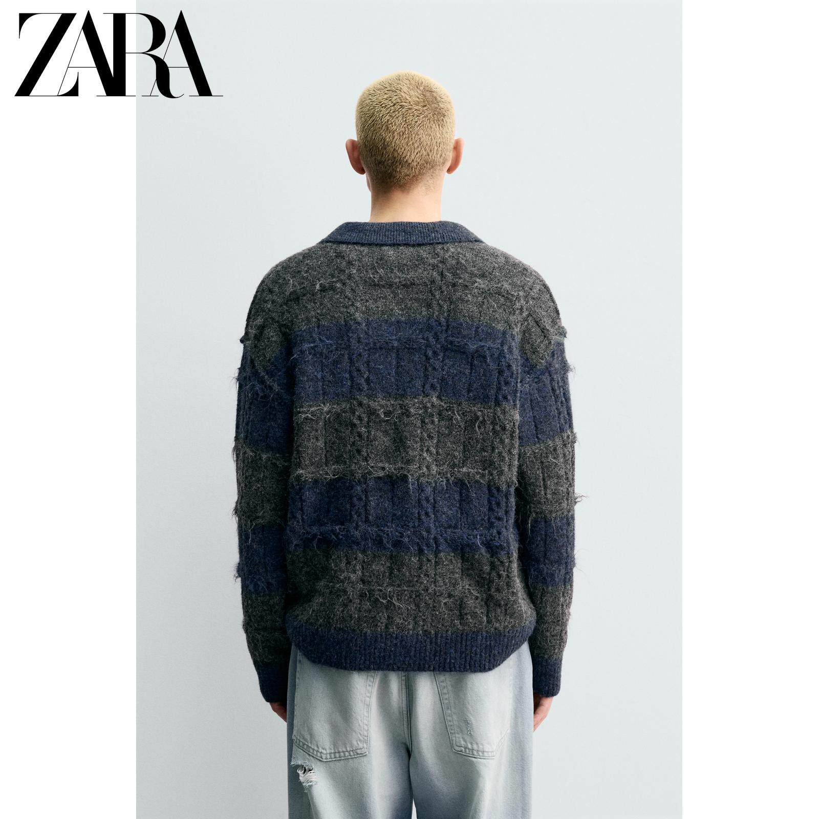 ZARA Новинки весны и лета 2026, мужская свободная трикотажная рубашка-поло с текстурированной жаккардовой полоской 3920413 807