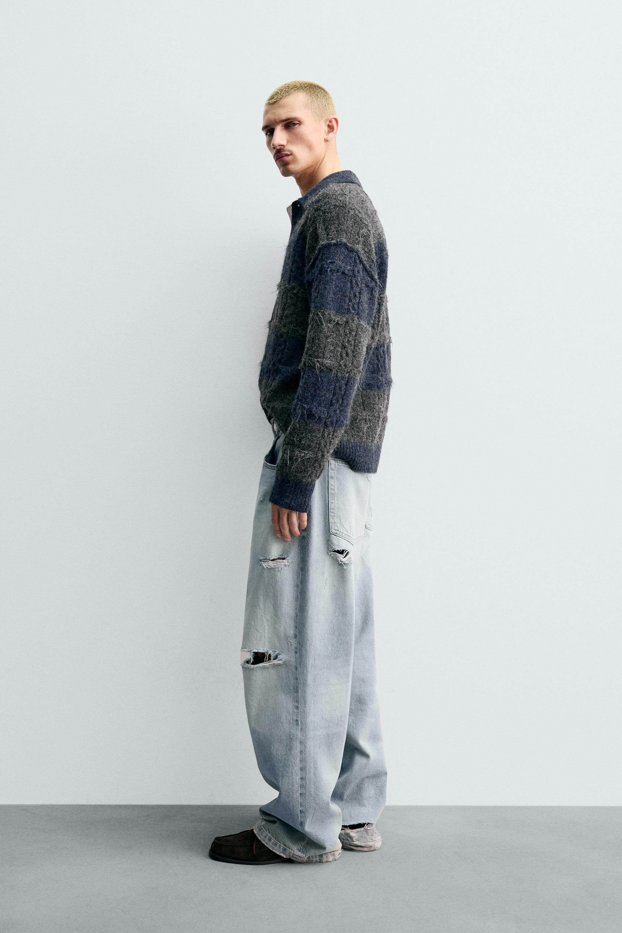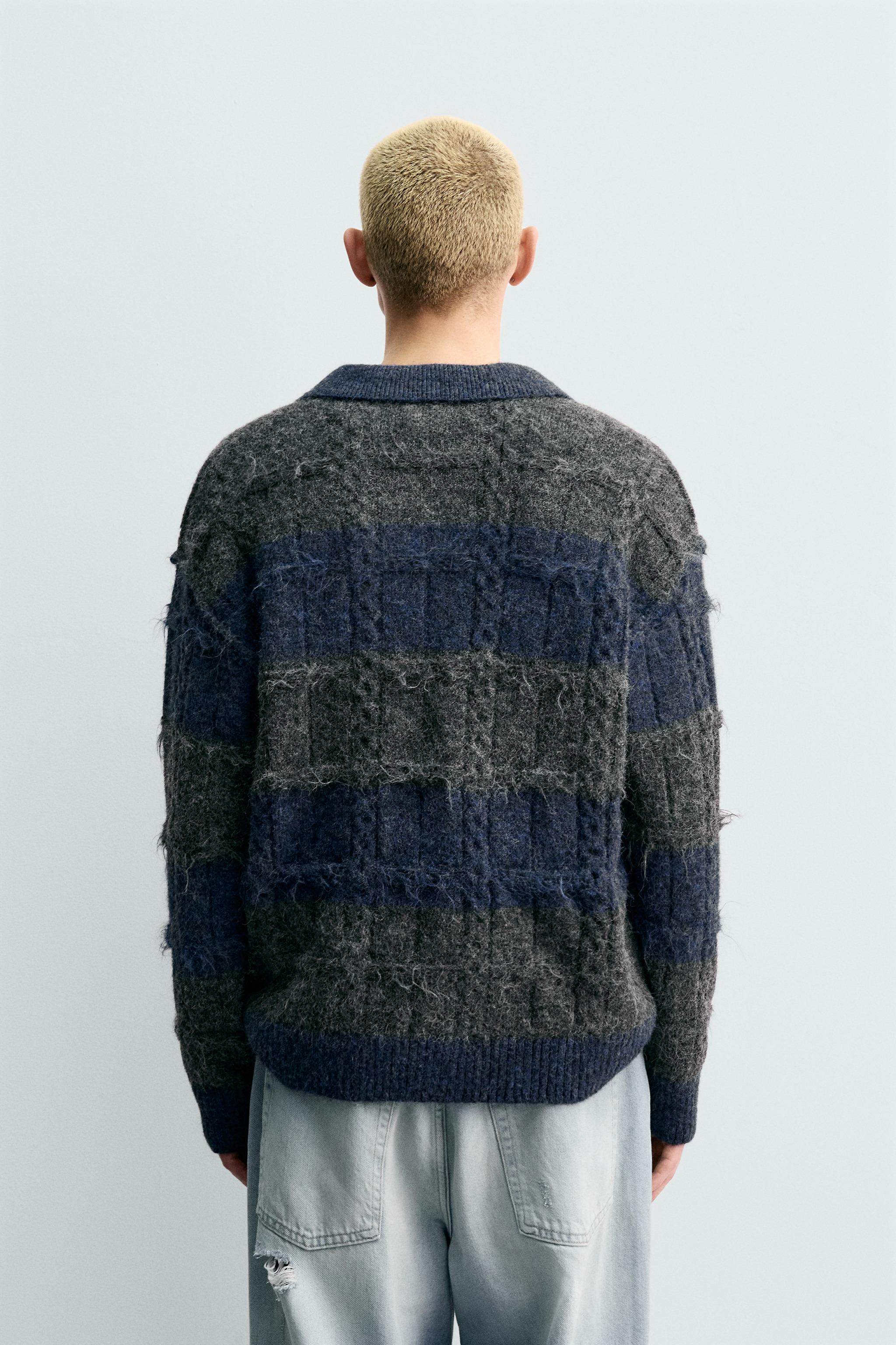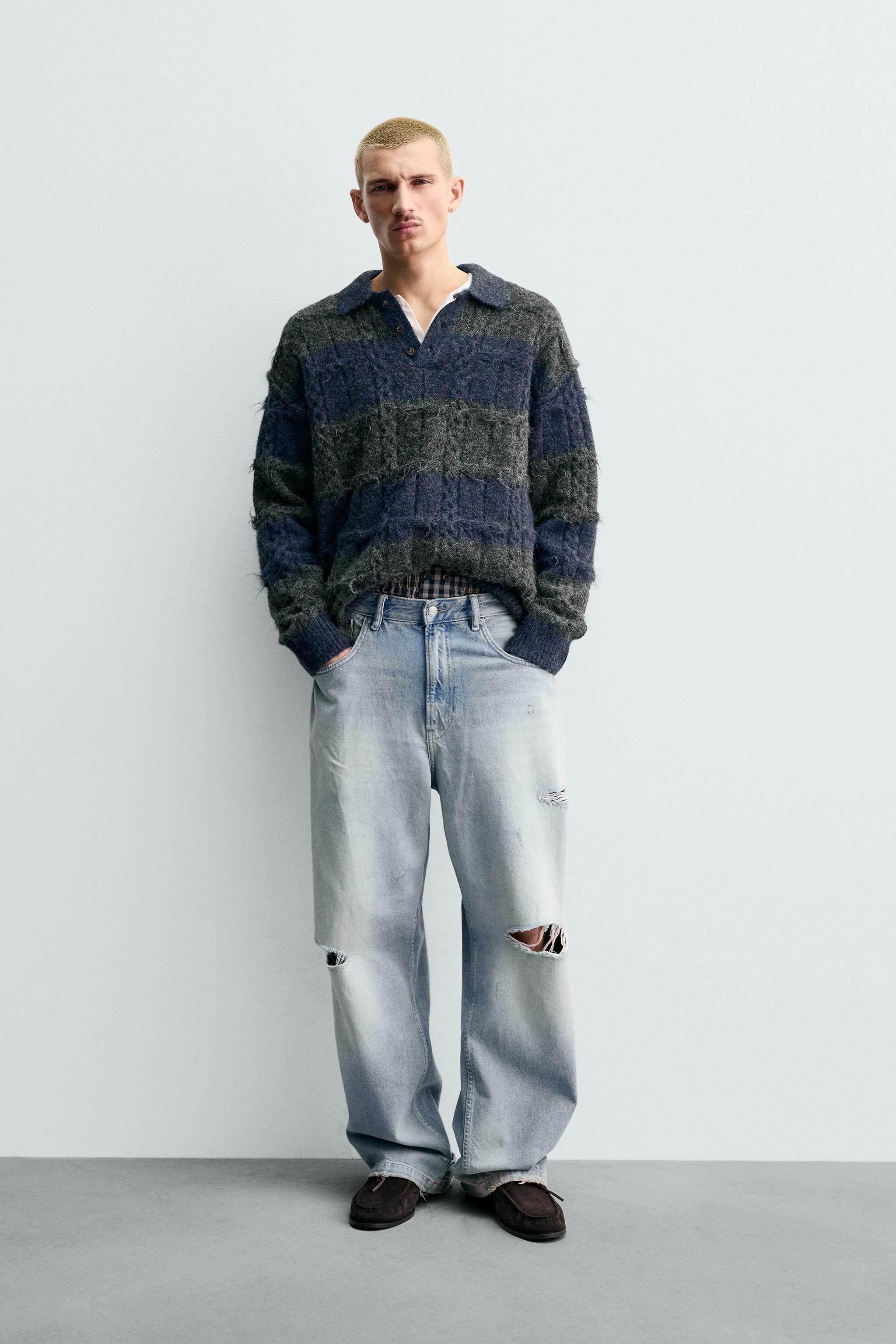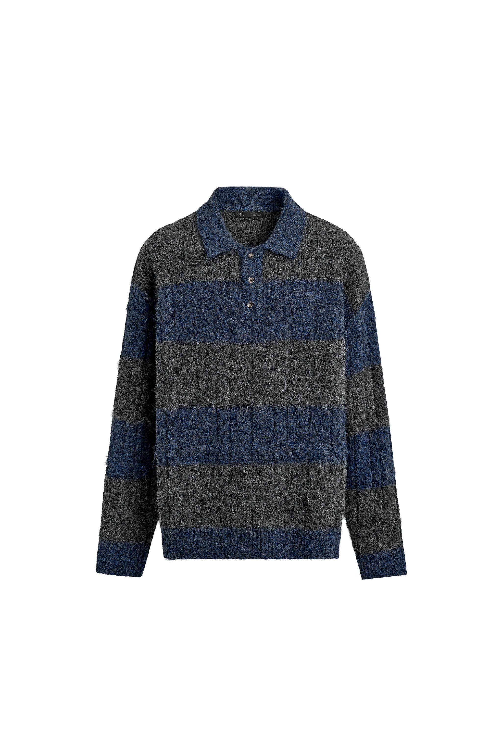 ZARA Новинки весны и лета 2026, мужская свободная трикотажная рубашка-поло с текстурированной жаккардовой полоской 3920413 807