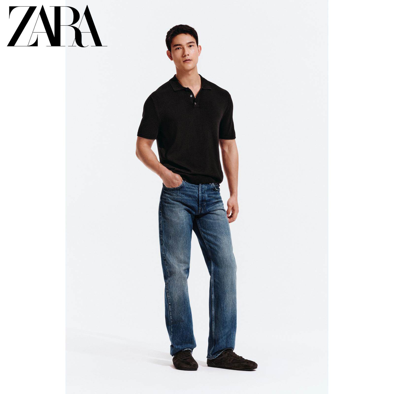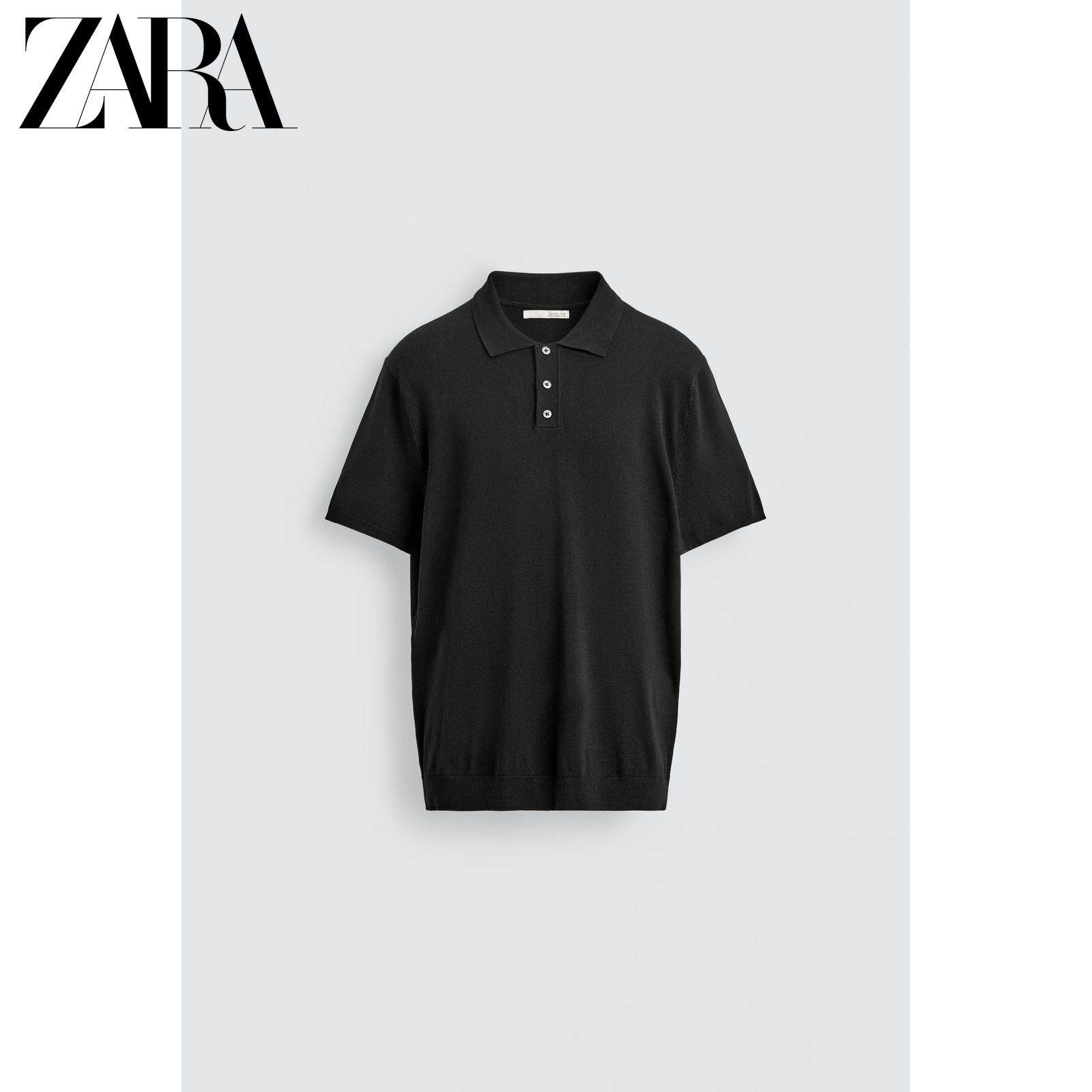 ZARA Зимняя трикотажная футболка polo, свободный прямой крой, короткий рукав